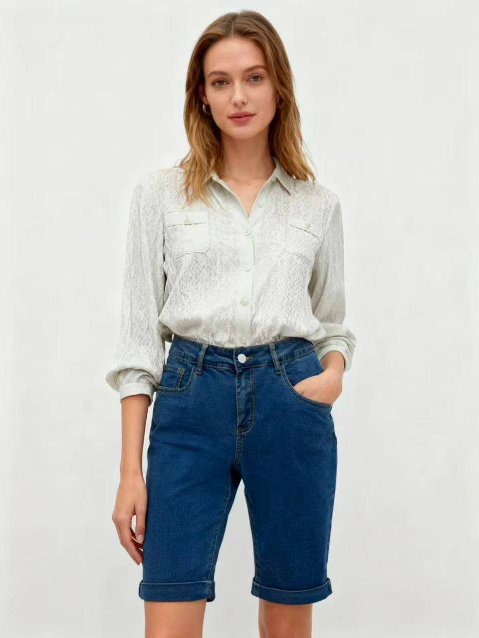 Vaqueros cortos de talle alto con mucha elasticidad, talla grande 📏 Talla: 40–52 📦 Lote: 12 pcs, tallas variadas