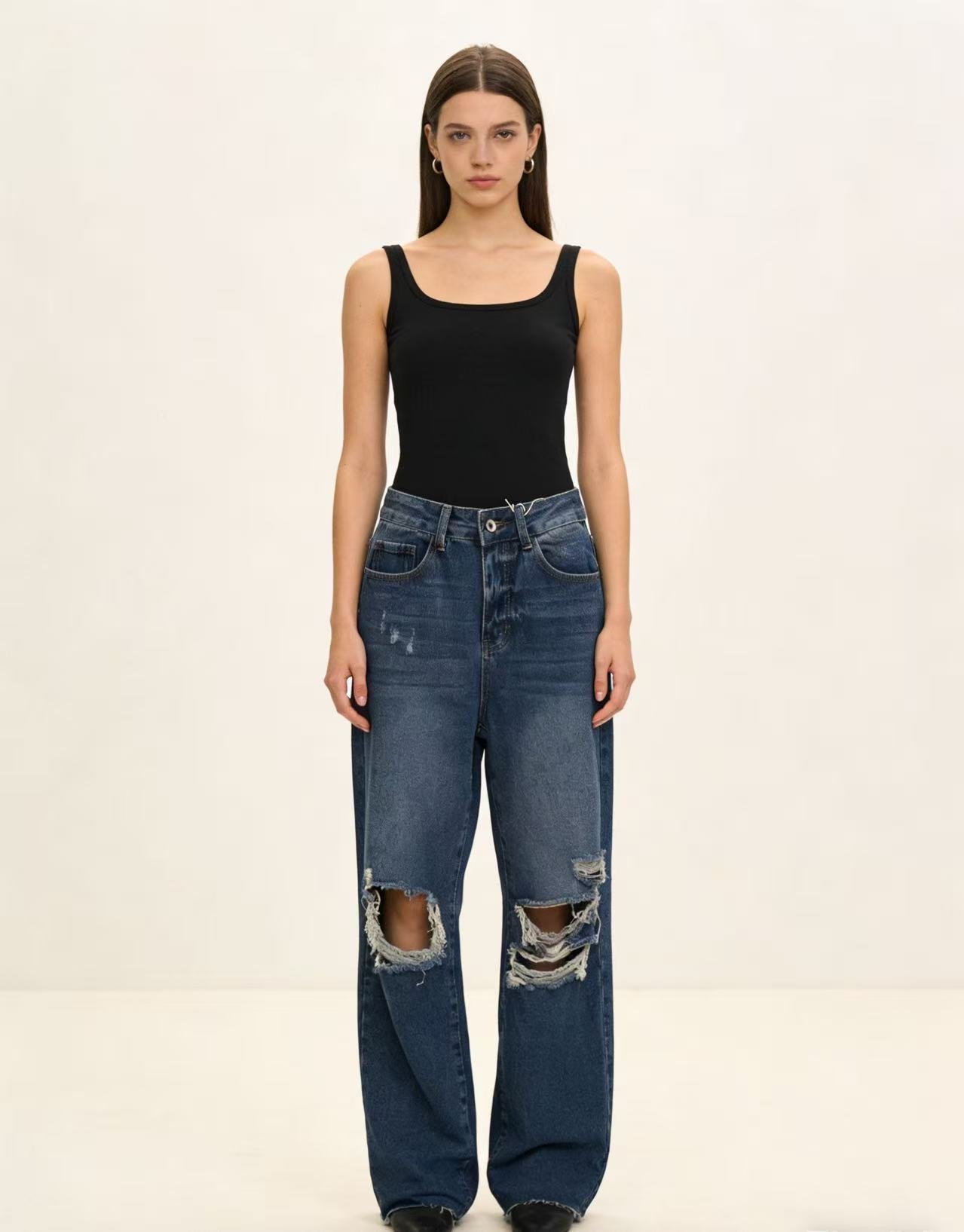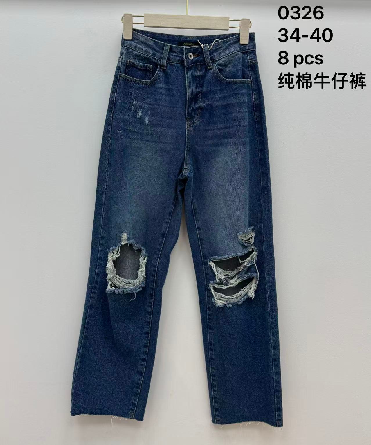 Vaquero rotos algodón corte ancho 📏 Talla: 34–40 📦 Lote: 4/ 8 pcs, tallas variadas
