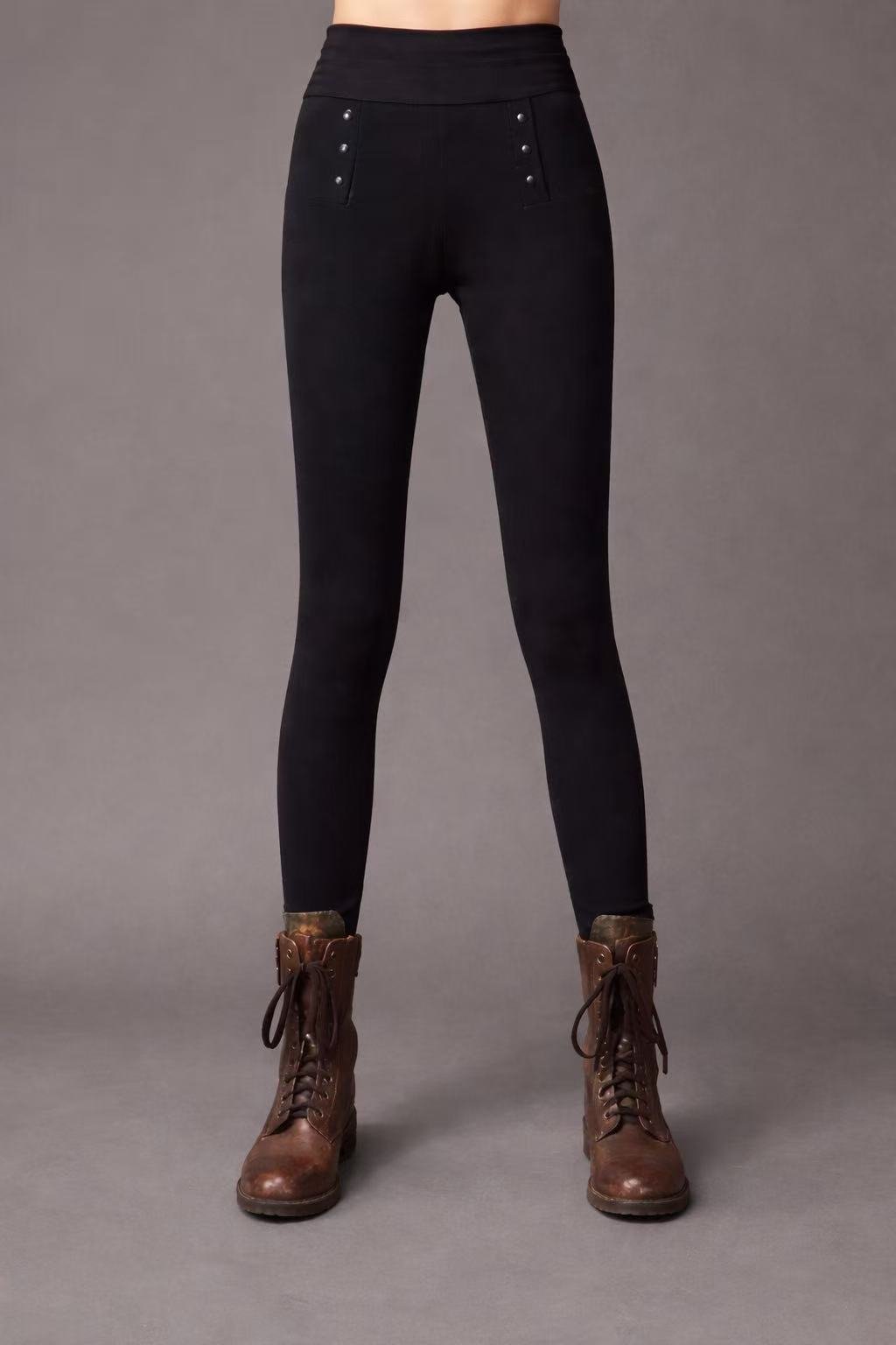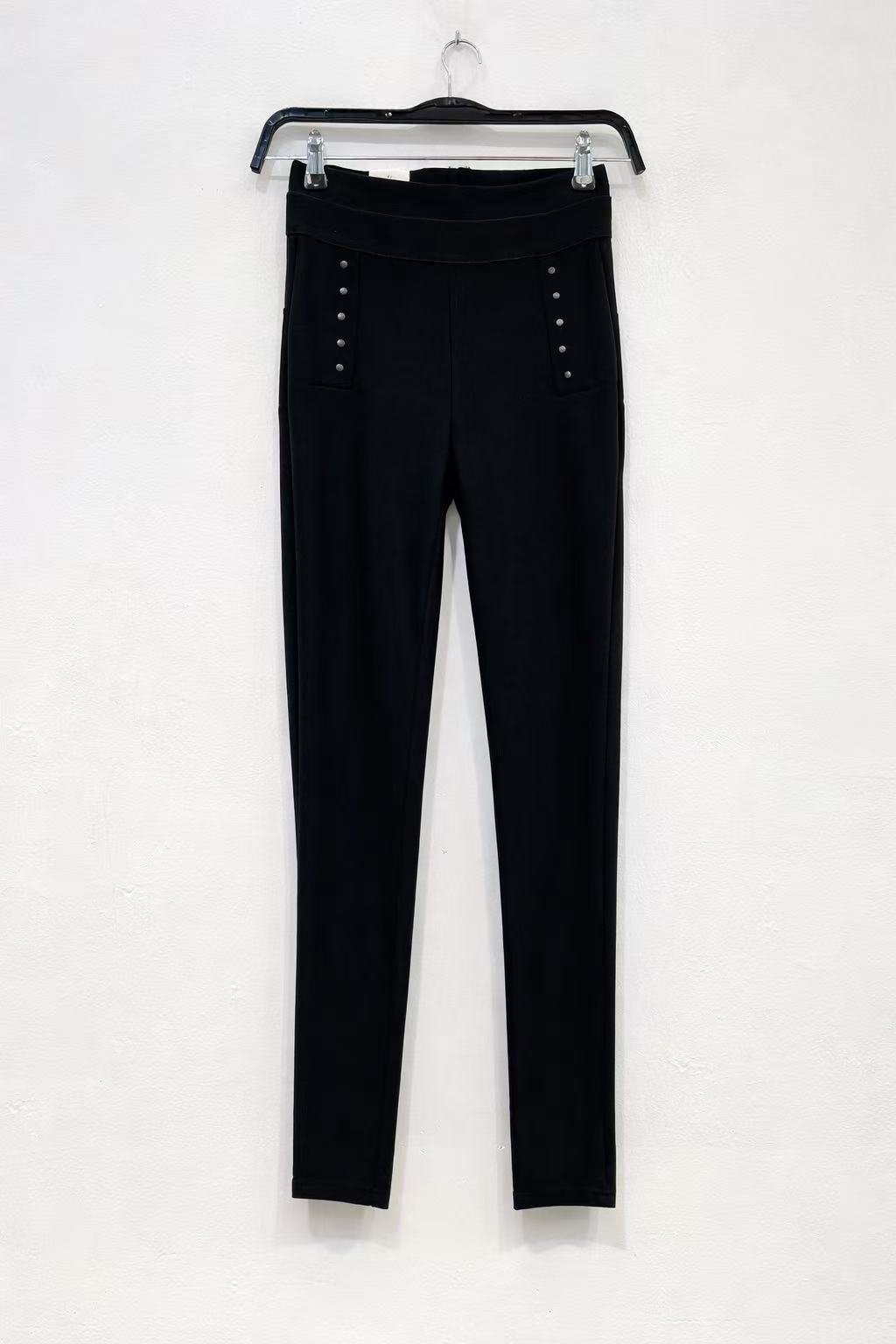 Pantalón ajustado de talle alto con tachuelas metálicas 📏 Talla: 34–42 📦 Lote: 5/10 pcs, tallas variadas