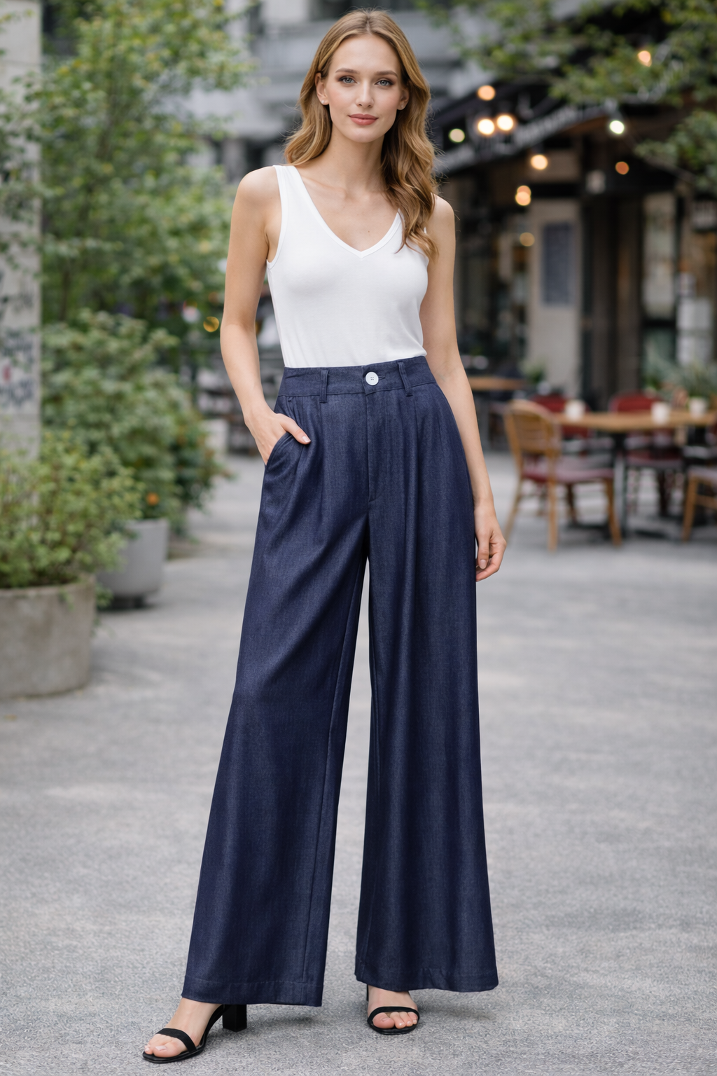 Pantalón de vestir de pierna ancha de estilo vaquero