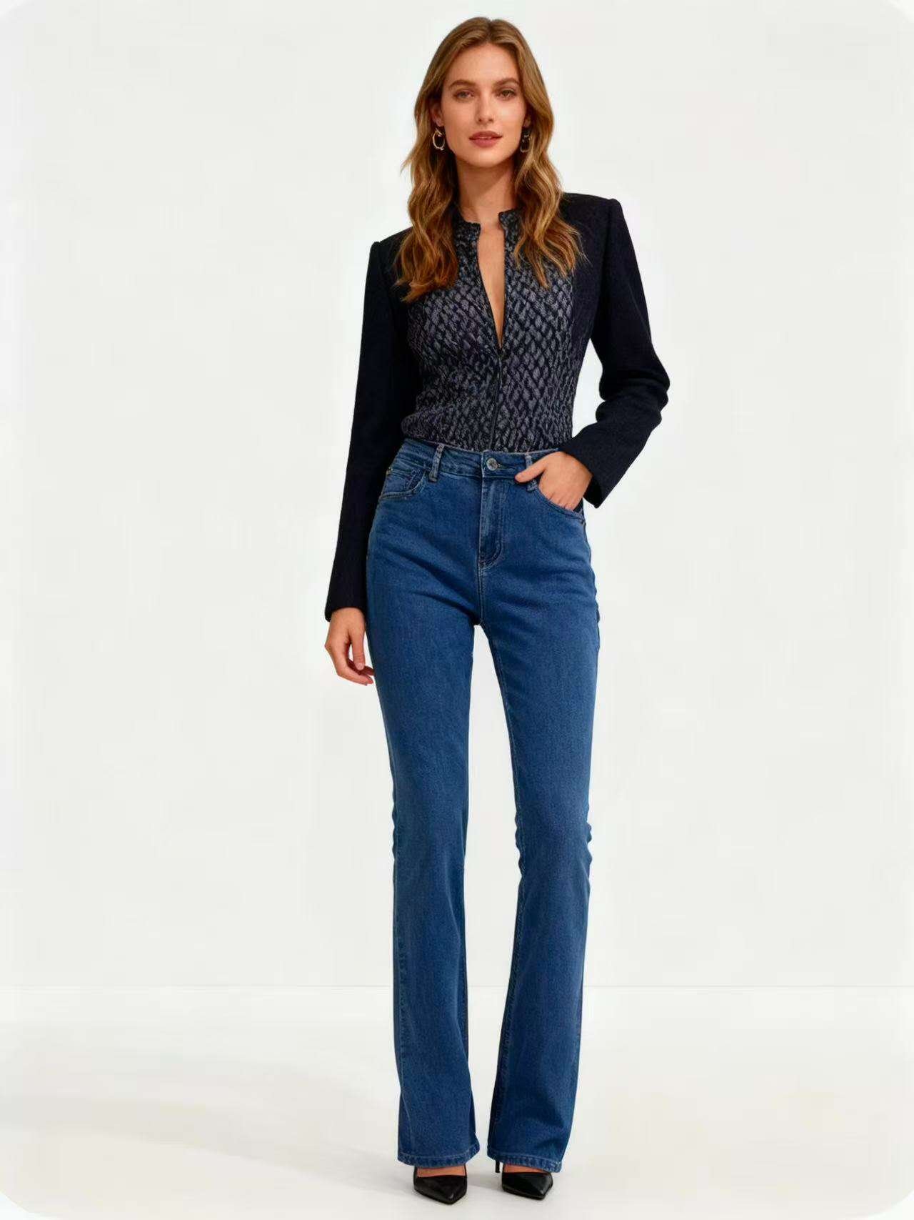 Vaqueros rectos de talle alto con elasticidad, talla grande