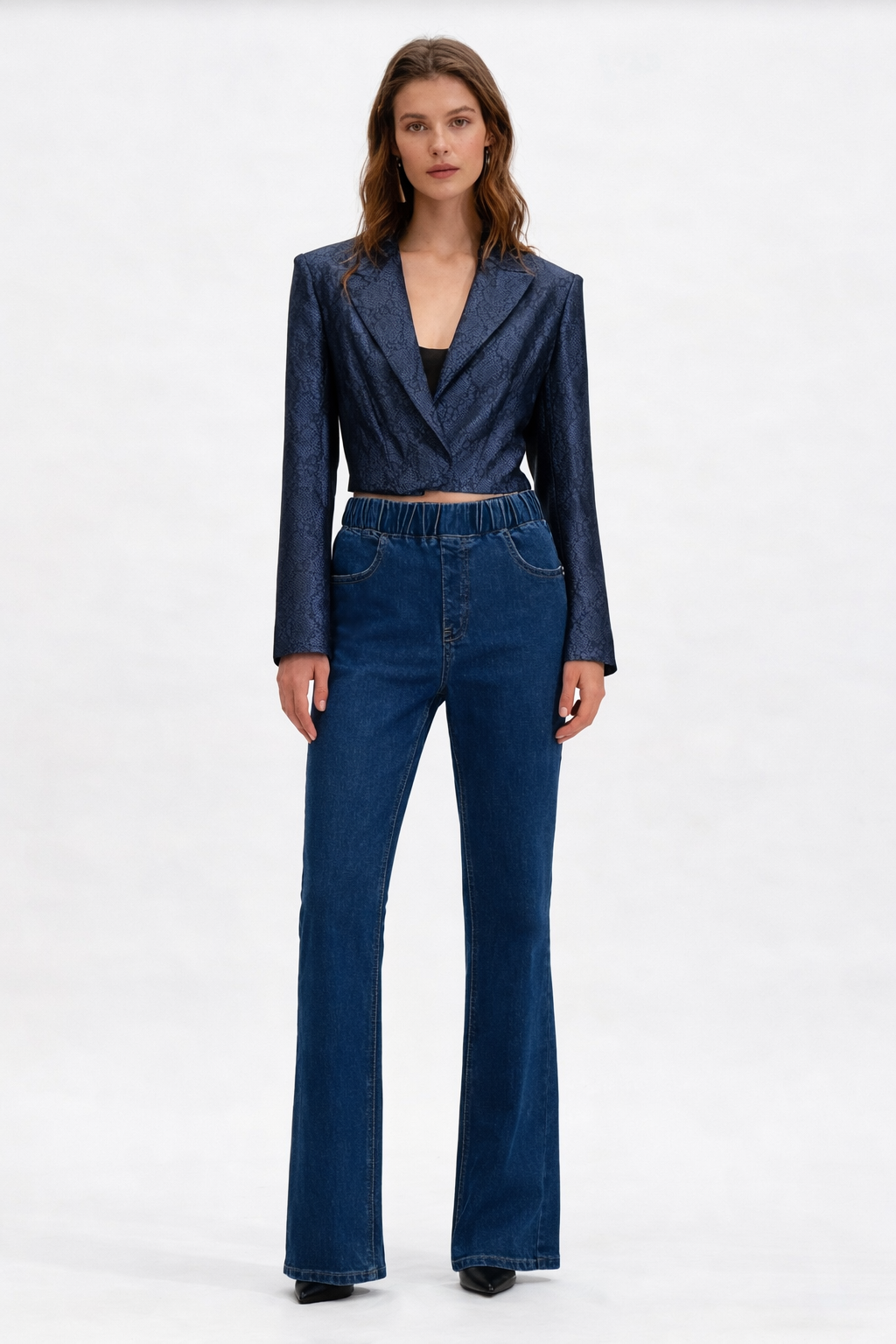 Vaqueros rectos de talle alto con cinturón elástico, talla grande