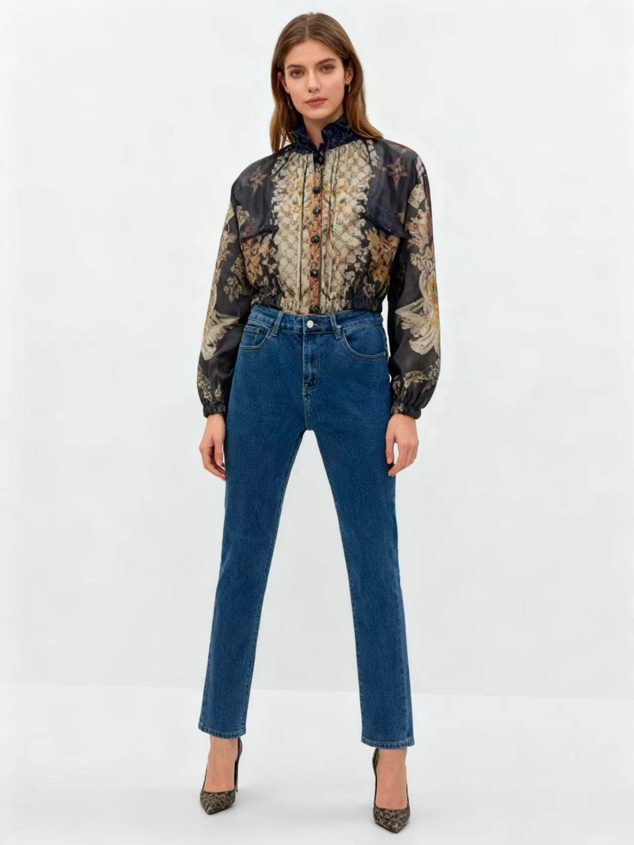 Vaqueros rectos de talle alto con elasticidad, talla grande 📏 Talla: 40–52 📦 Lote: 12 pcs, tallas variadas