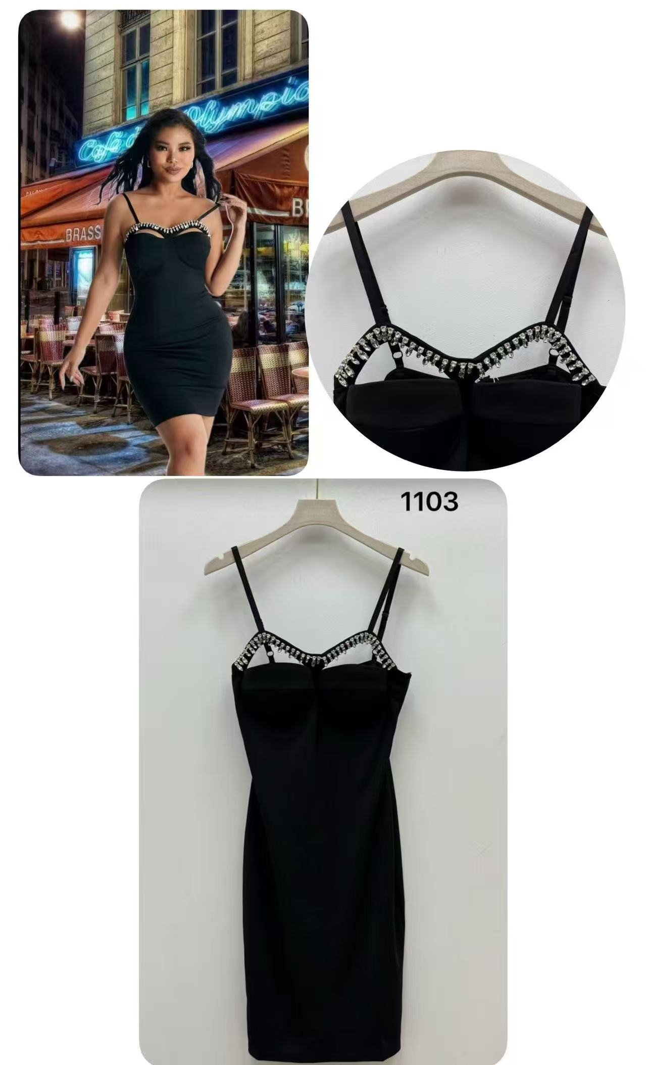 Diseño elegante y sensual, con detalle de strass en el escote que aporta brillo y sofisticación. Corte ajustado que realza la silueta, ideal para noches, eventos o looks de fiesta.