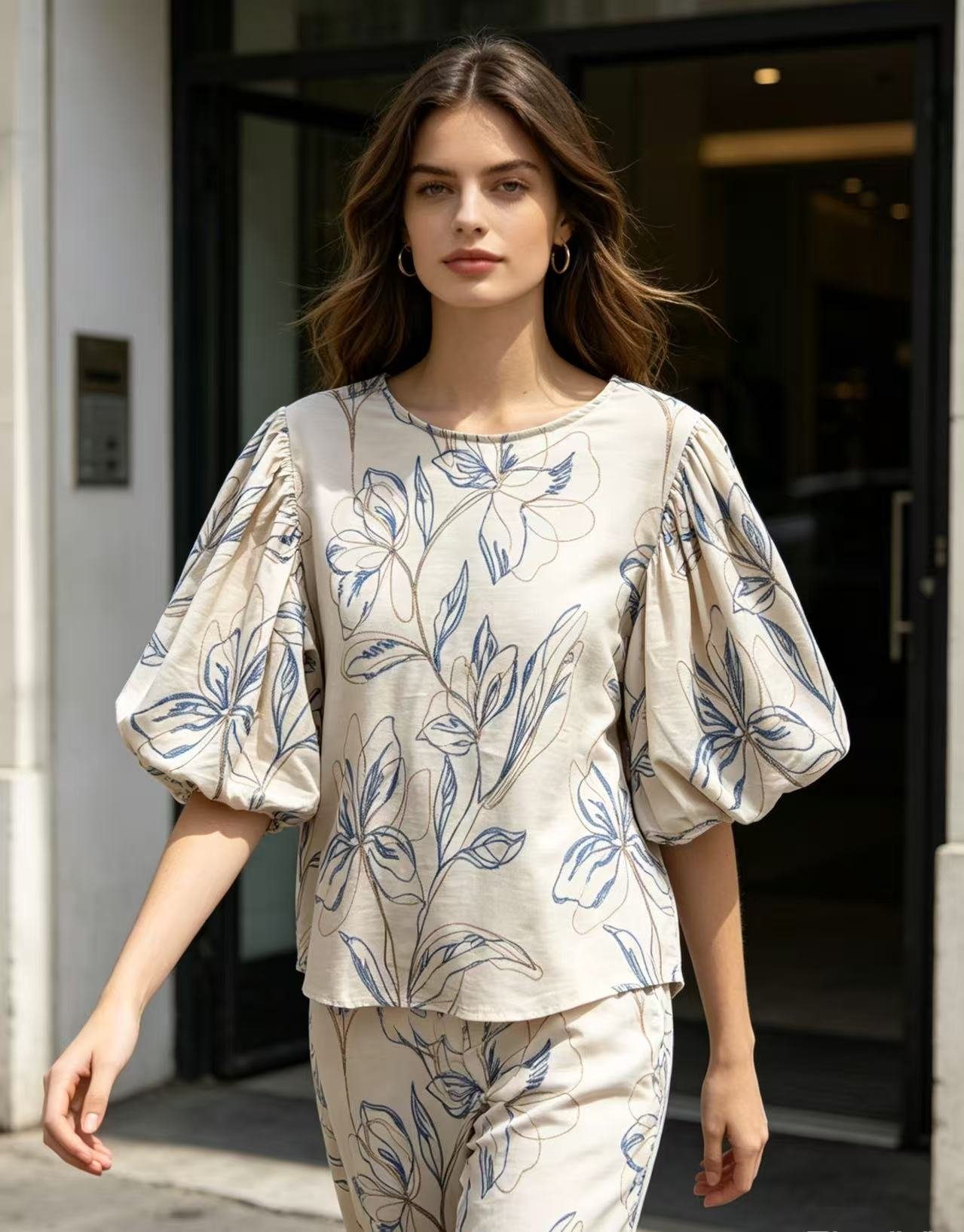 Blusa estampada con manga abullonada