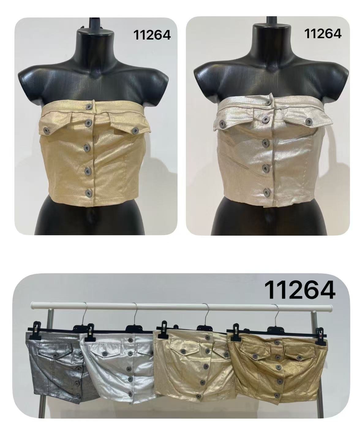 Top palabra de honor efecto piel ✨ Diseño ajustado con botones decorativos.