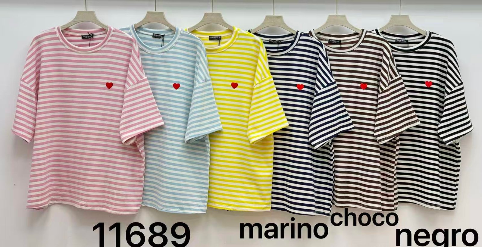 Camiseta algodón rayas con corazón bordado ✨