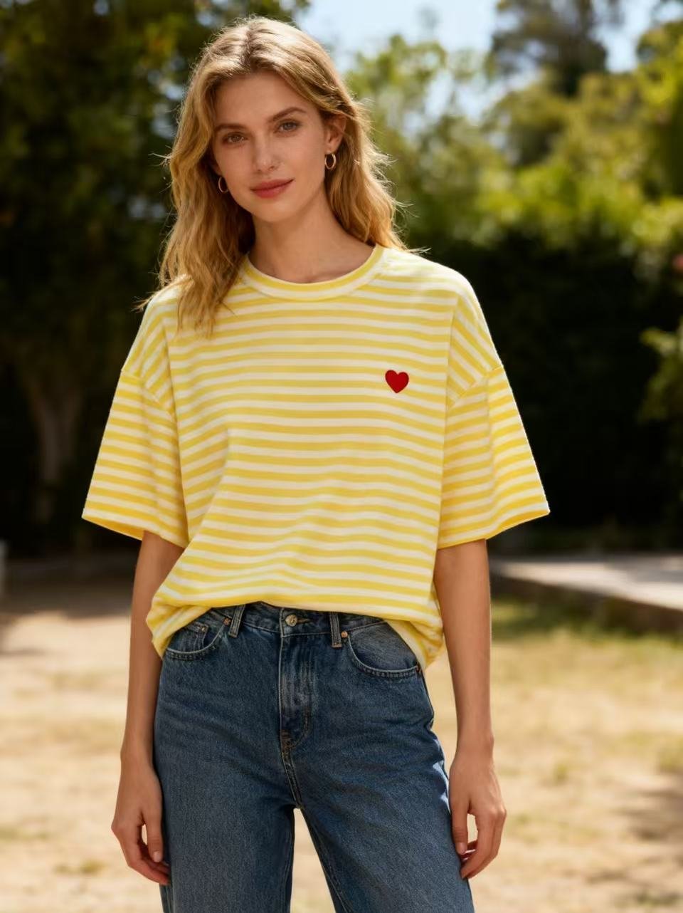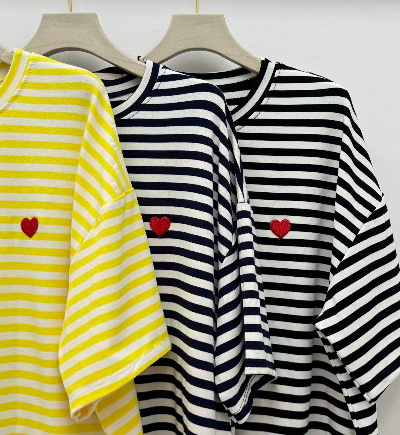 Camiseta algodón rayas con corazón bordado ✨