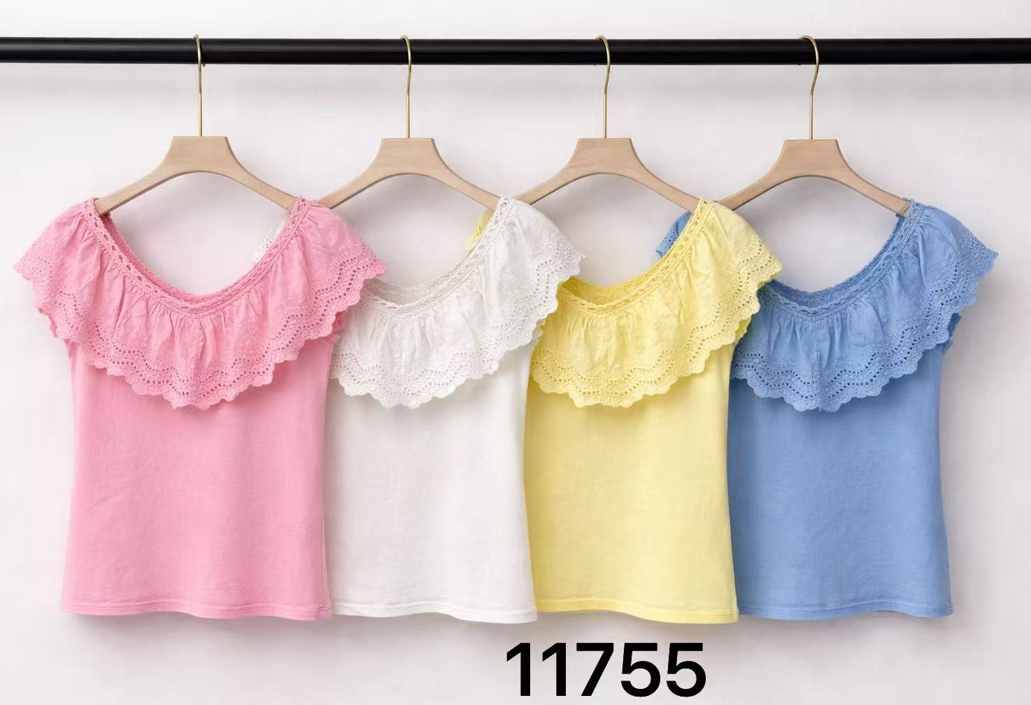 Camiseta algodón con volante bordado ✨