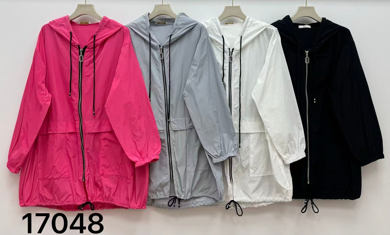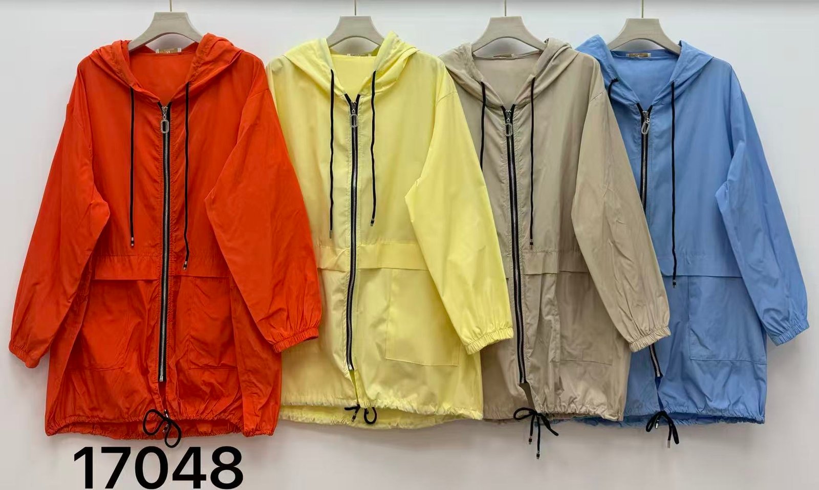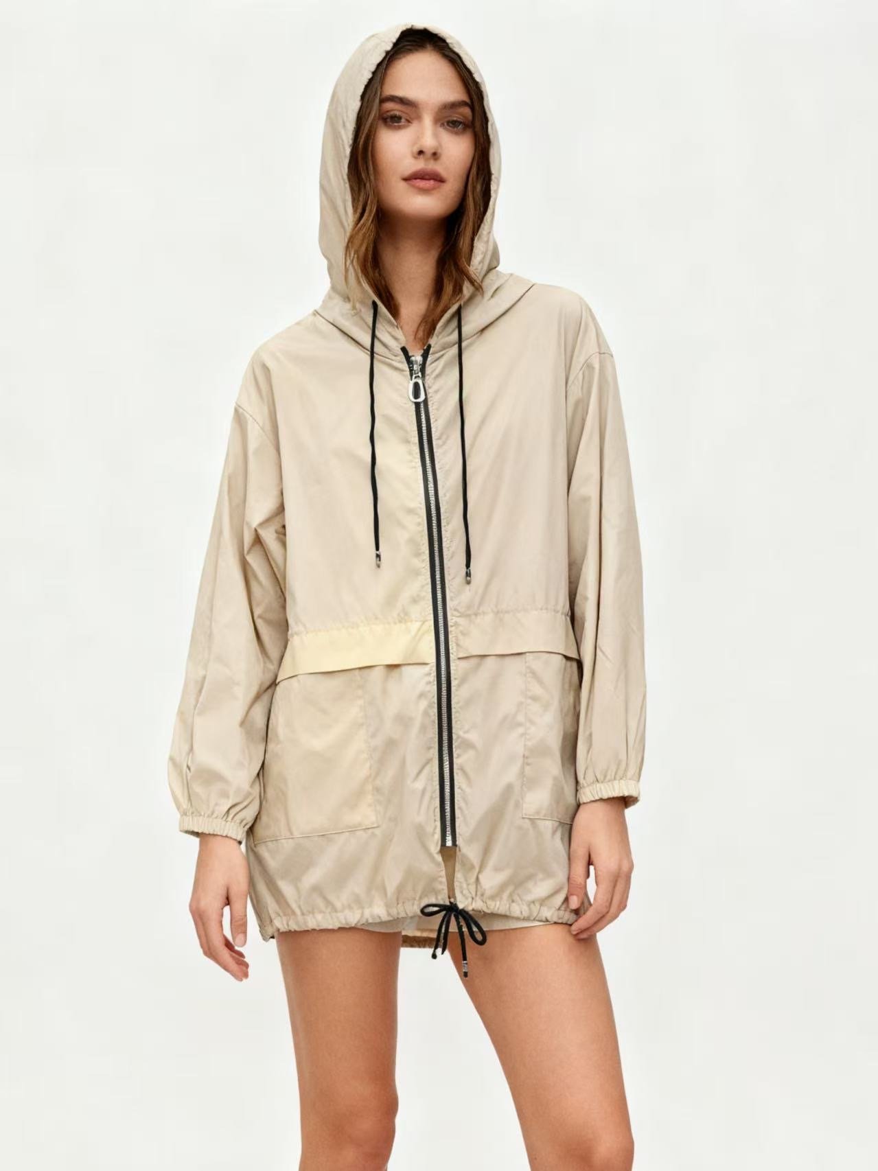 Chaqueta larga con capucha Tejido impermeable tipo chubasquero ligera