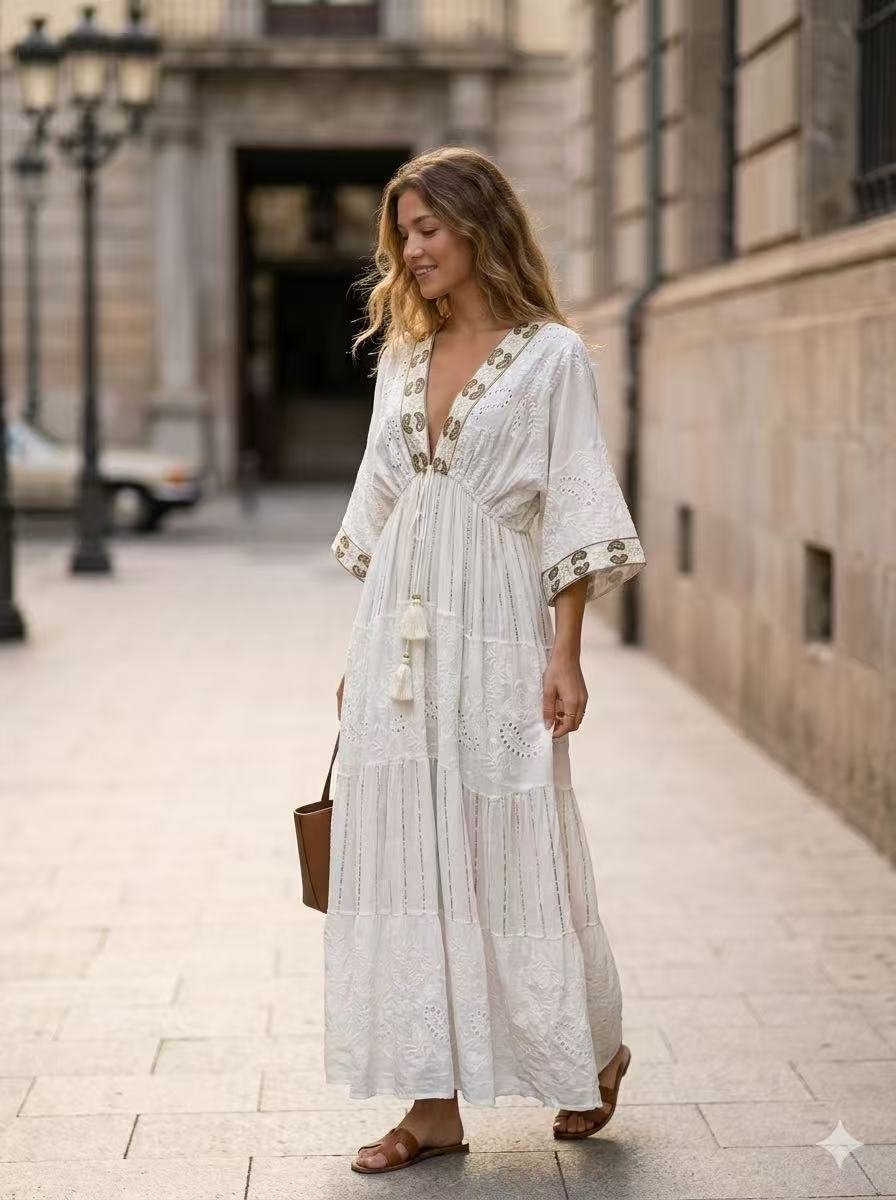Vestido largo boho bordado ✨