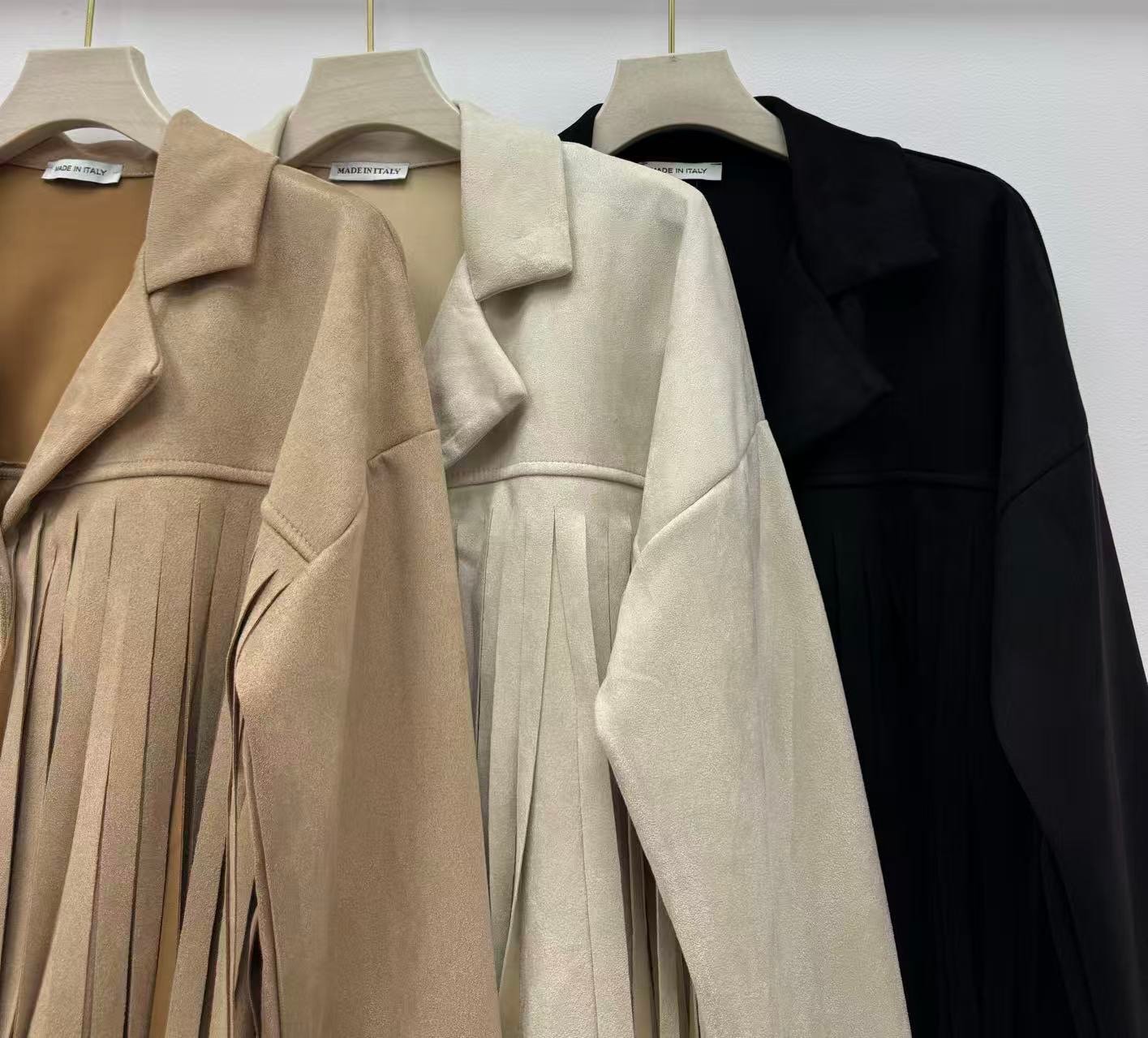 ✨ Chaqueta de antelina con flecos decorativos Diseño corto con cuello solapa y estilo western 📏 Pecho: 50–52 cm