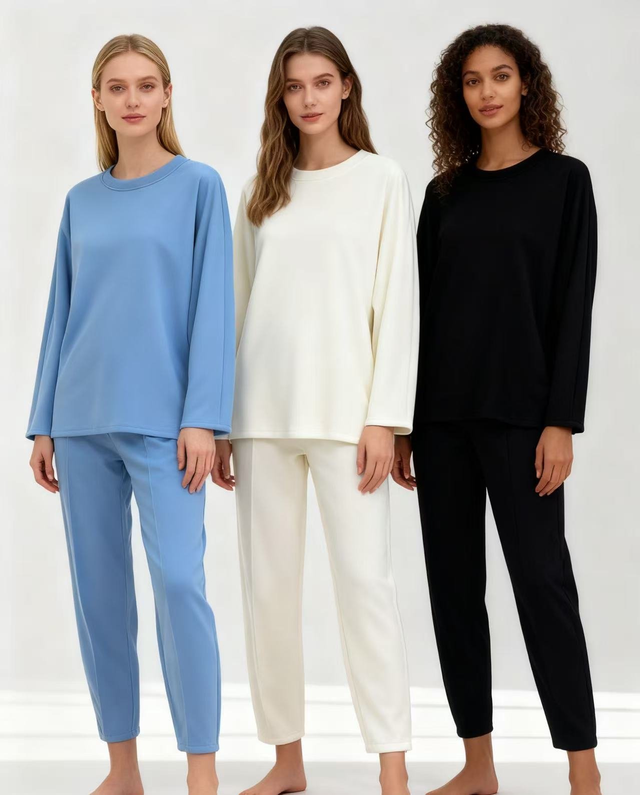 Sudadera de manga larga y pantalón con cintura elástica, ideal para un look casual y cómodo.