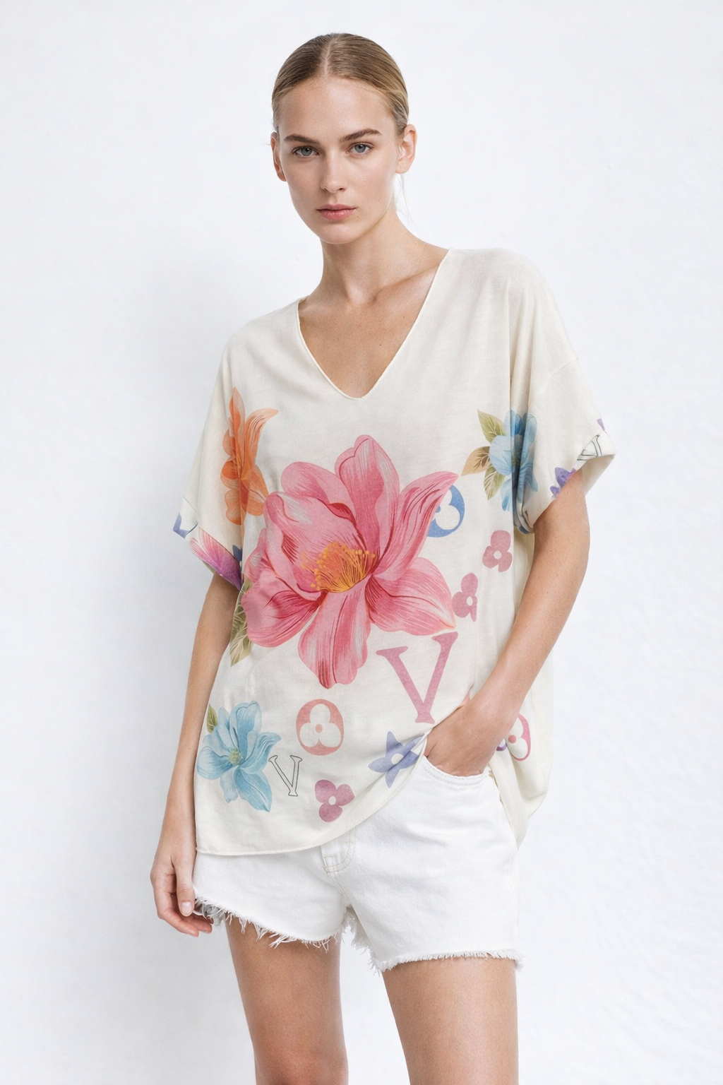 Camiseta amplia con estampado floral ✨