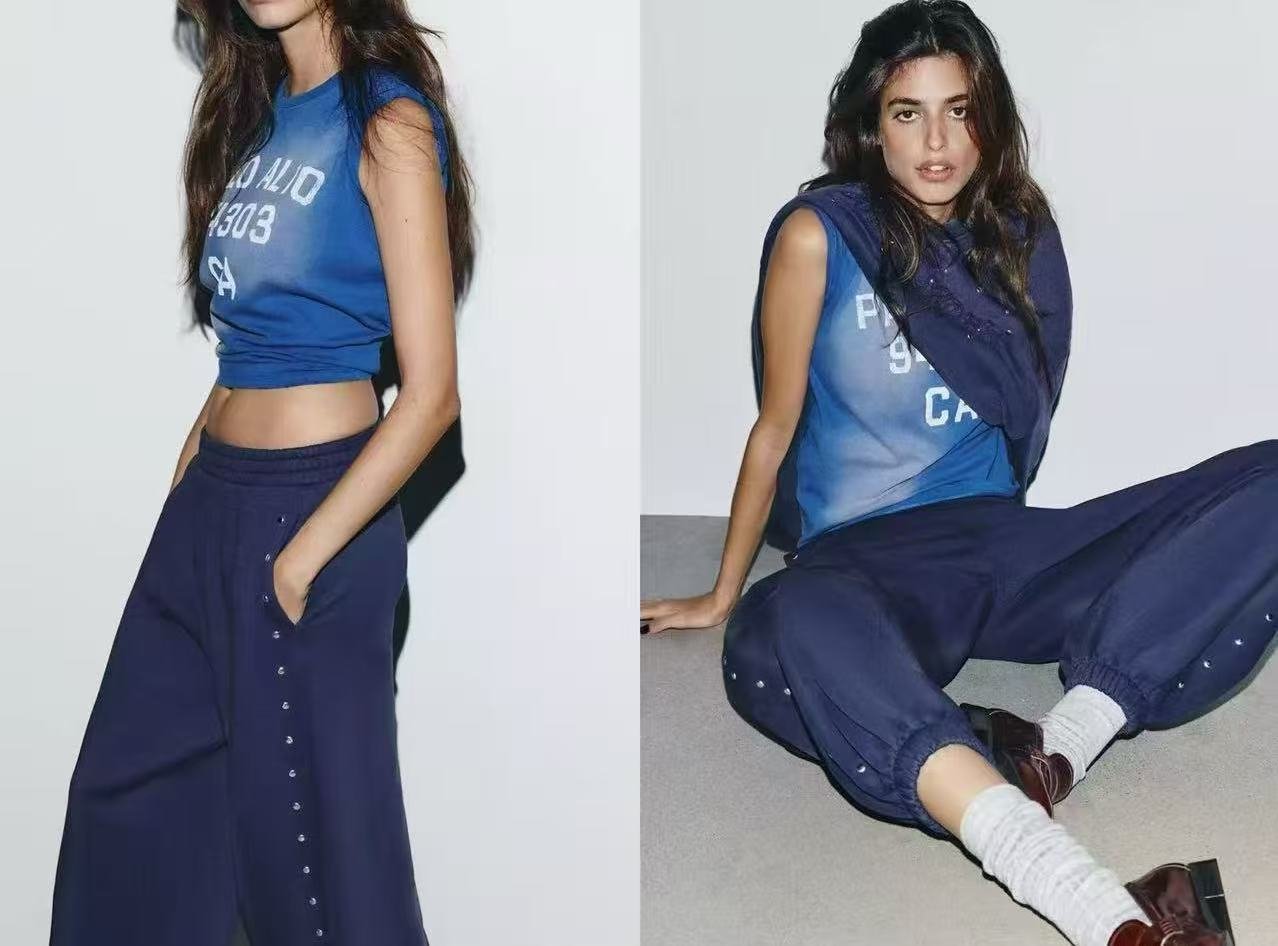 Corte cómodo, puño en el bajo y detalle de tachuelas en los laterales.