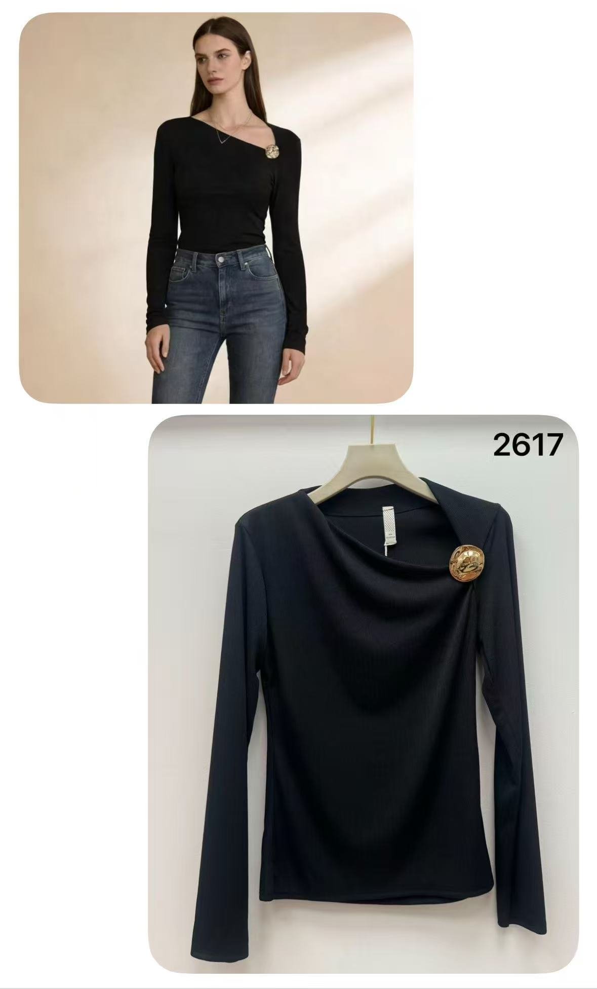 Camiseta asimétrica con broche decorativo ✨