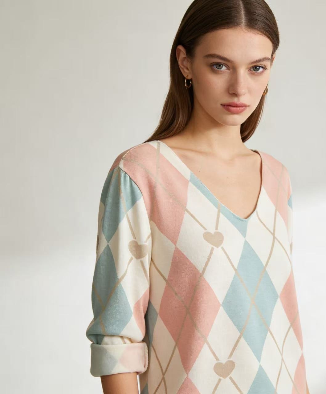 Camiseta estampada rombo manga larga