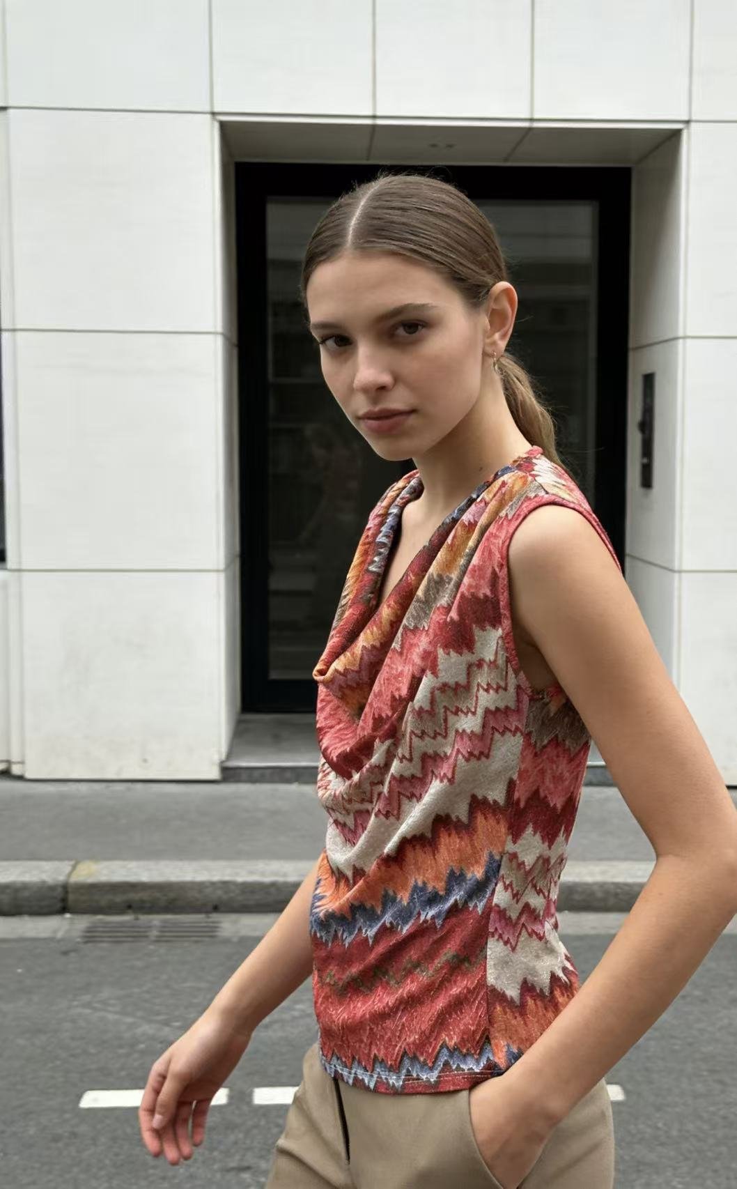 Top estampado con cuello drapeado ✨