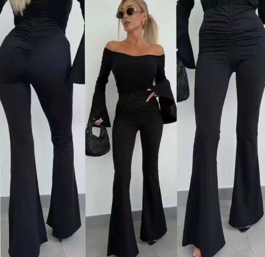 Pantalón campana con frunce Doble diseño elástico (delante y detrás) 📏 Cintura: 34–36 cm 📏 Largo: 108–110 cm