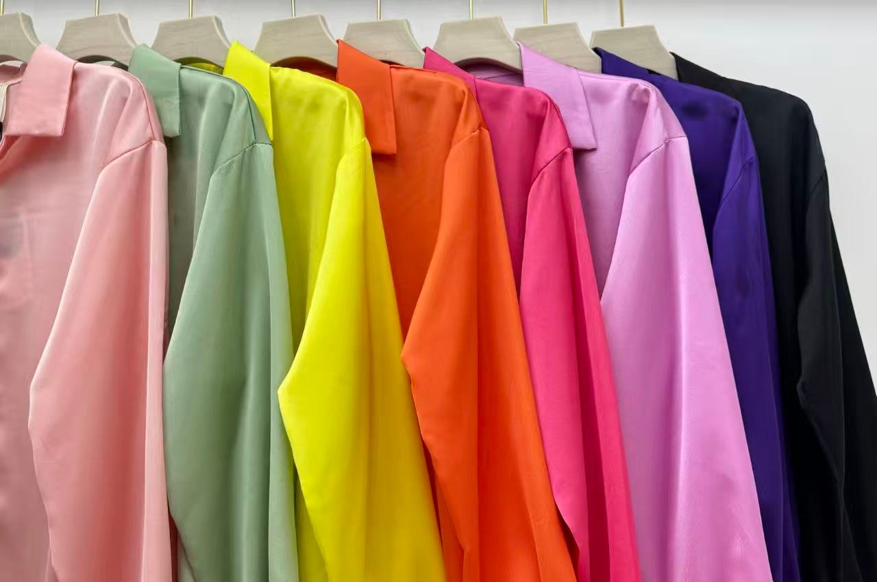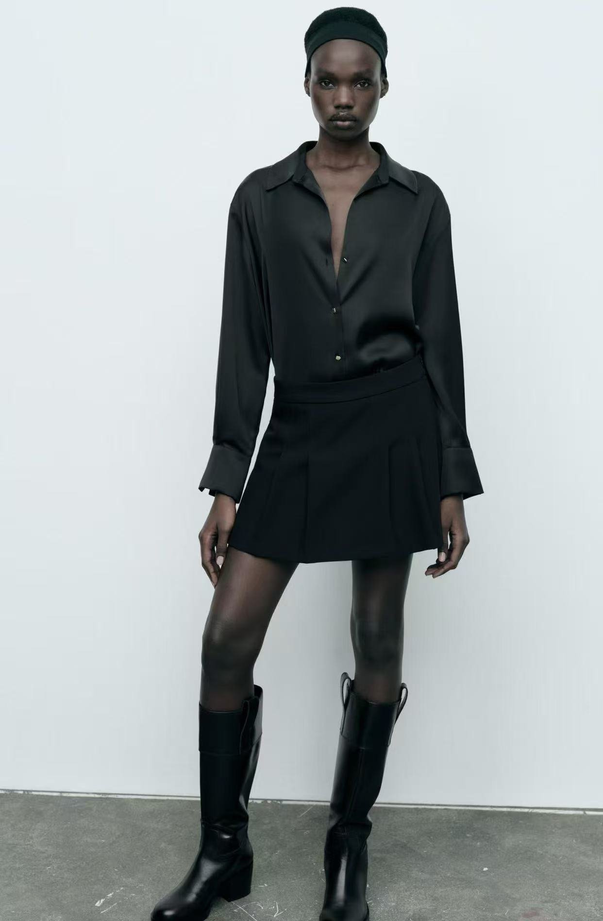 👚 Blusa satinada básica ✨ Tejido suave con acabado brillante y corte clásico 📏 Talla del pecho: 58-60 cm