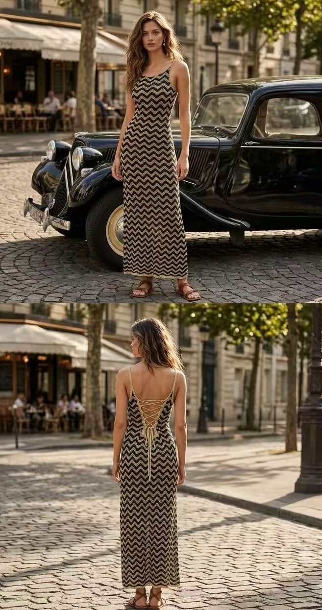 Vestido largo de crochet con espalda descubierta ✨