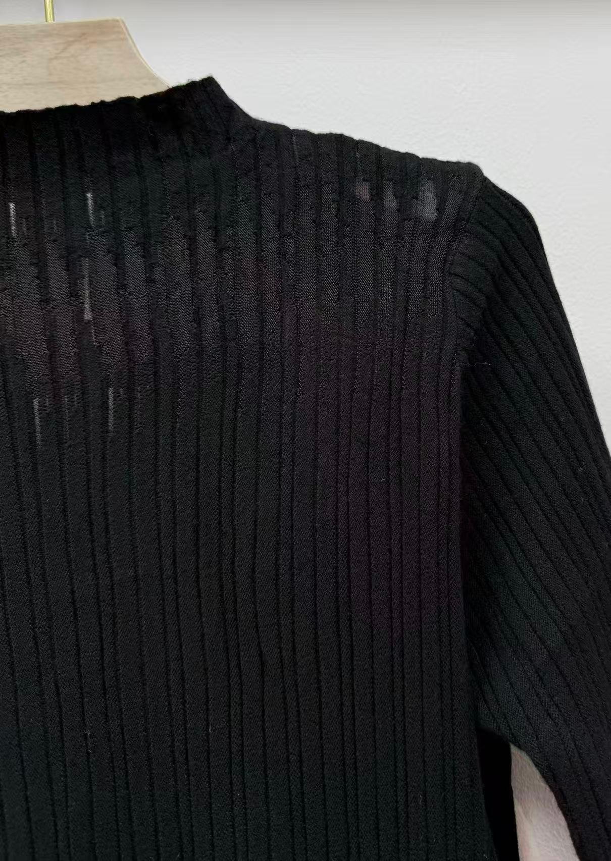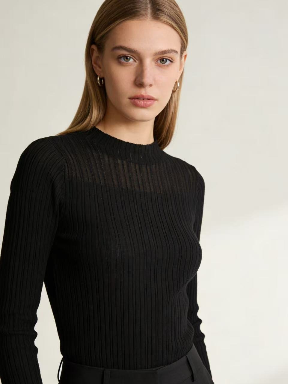 Jersey canalé con detalle semitransparente en la parte superior ✨