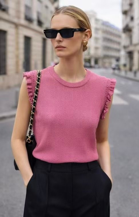 Top punto fino con volante en hombros ✨