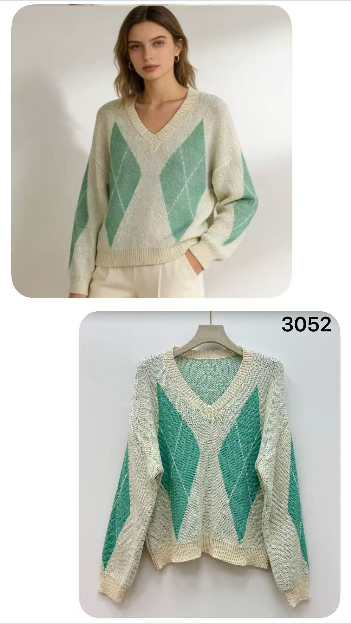 Jersey de punto con cuello pico ✨ 📏 Talla de pecho: 58–60 cm