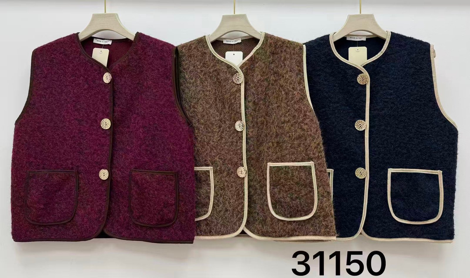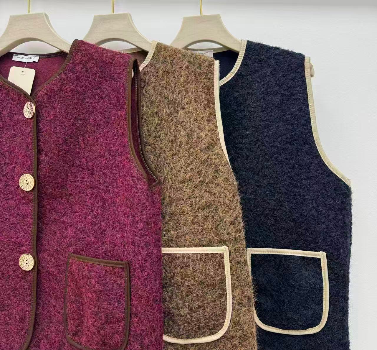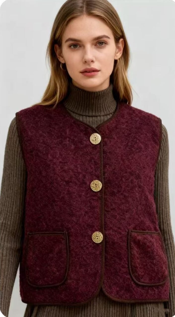 🧥 Chaleco de lana con botones decorativos y bolsillos frontales