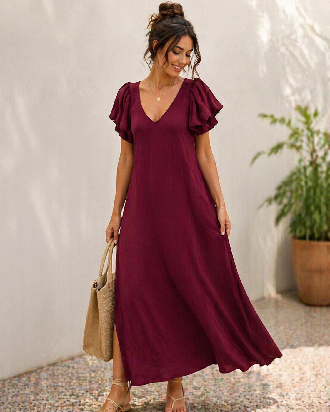 Vestido largo fluido con manga volante ✨