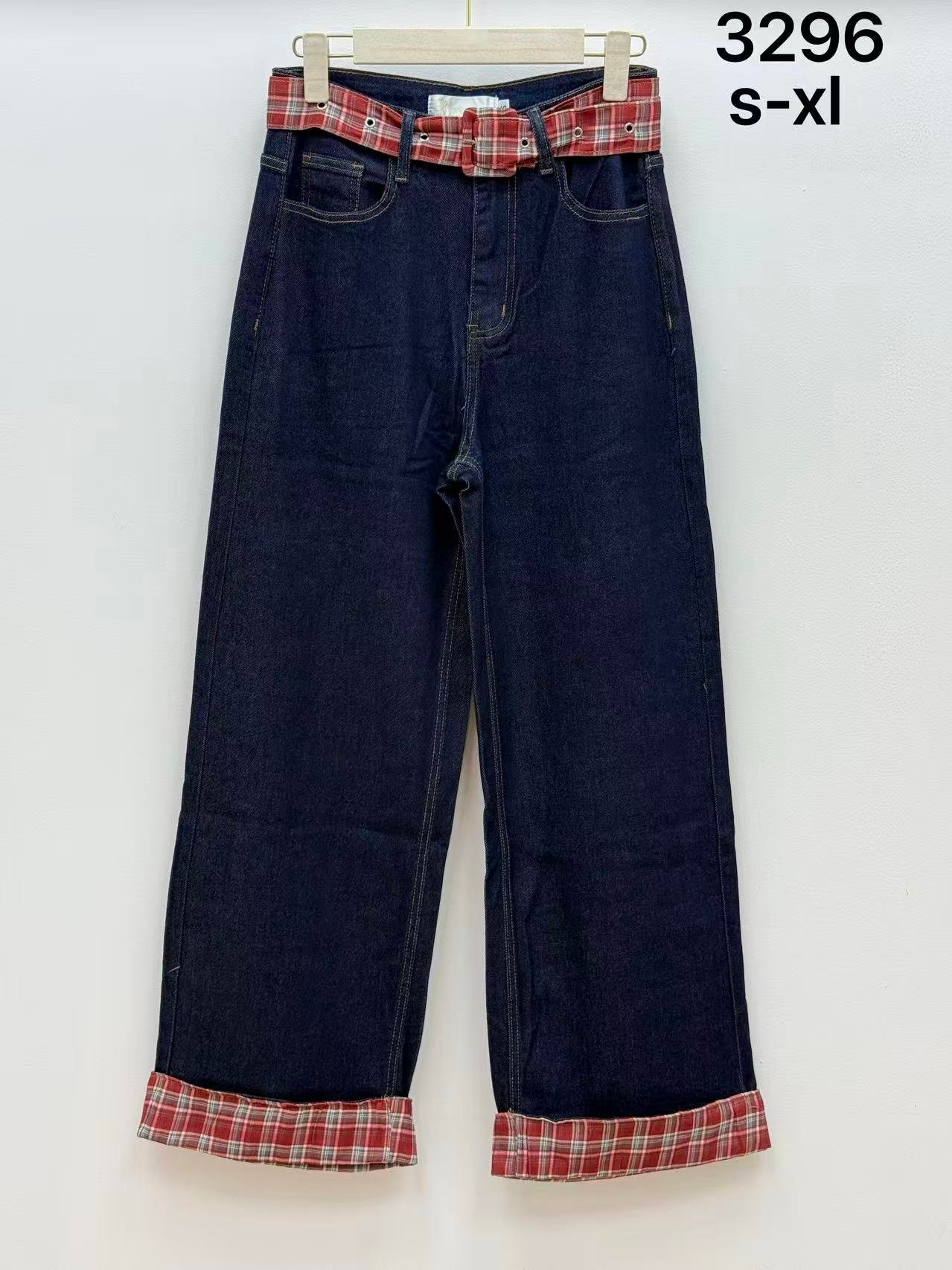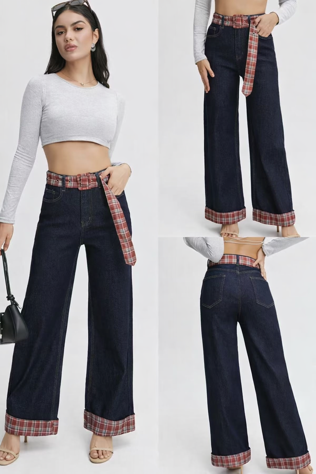 Pantalón vaquero ancho con bajo vuelto y cinturón a juego ✨