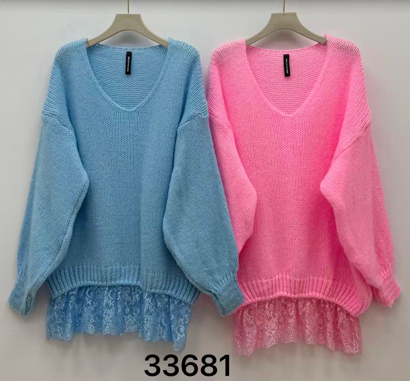 Diseño oversize con escote en V y detalle de encaje que aporta un toque femenino y elegante. Tejido suave y cómodo, ideal para looks casuales con estilo.