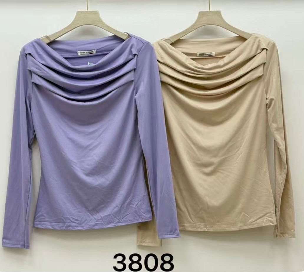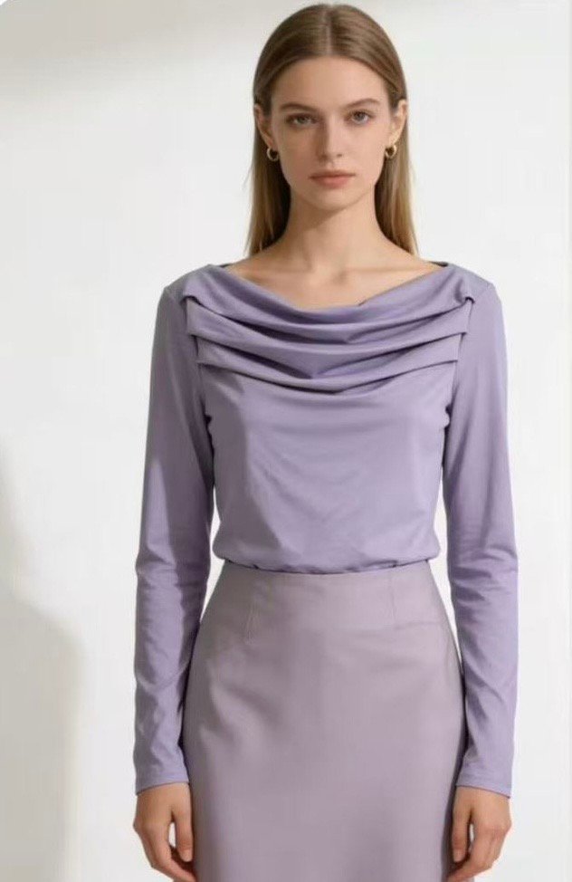 ✨Camiseta con diseño drapeado en cuello amplio y manga larga