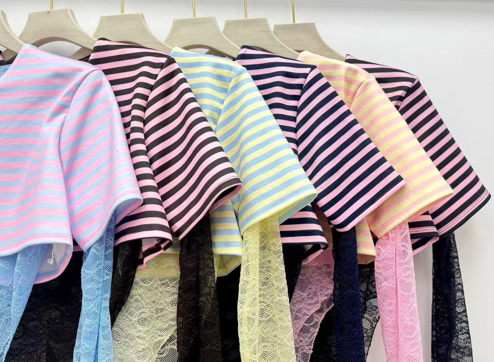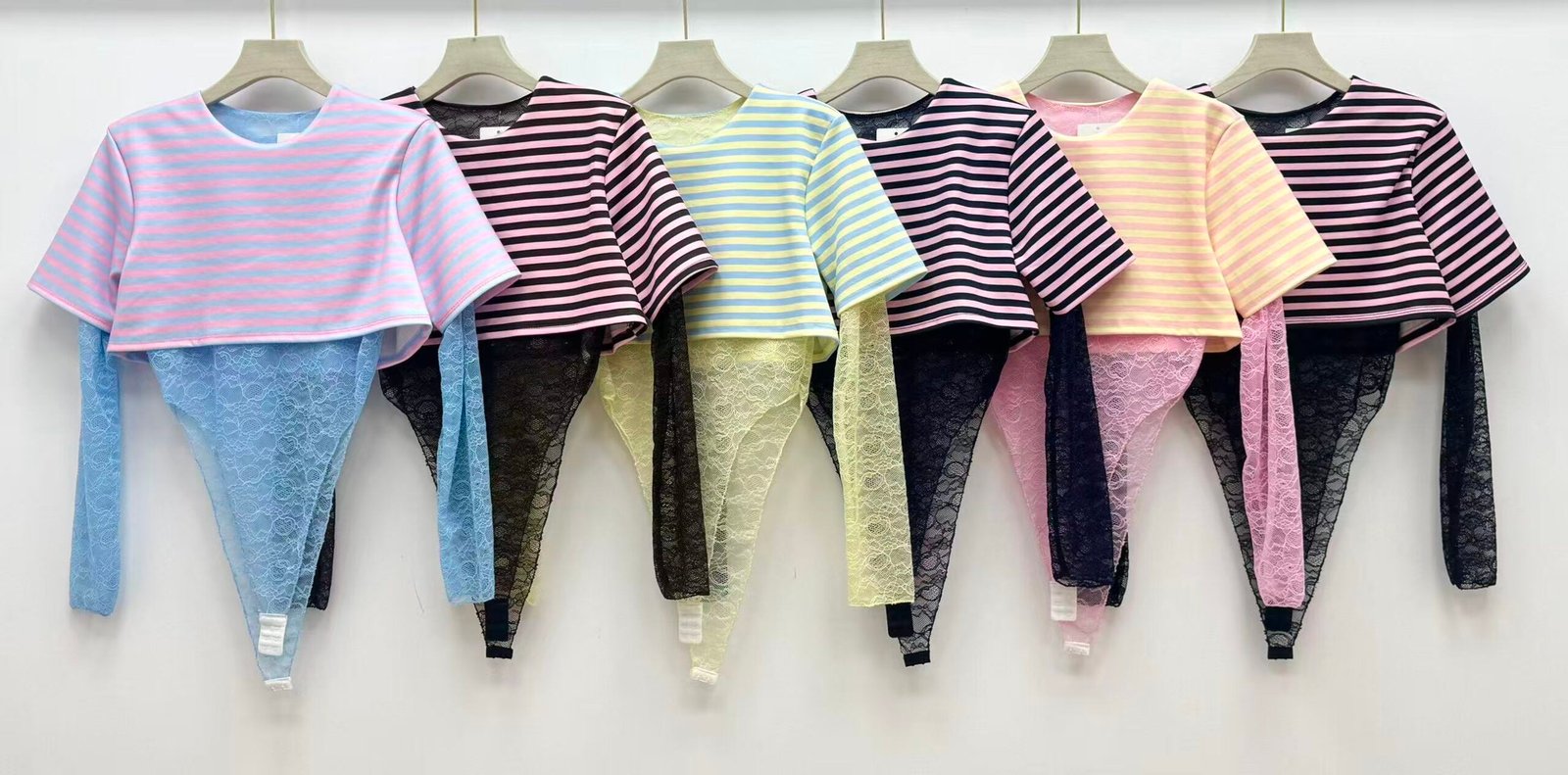 Body combinado con crop rayado ✨ Manga de encaje y cierre inferior.