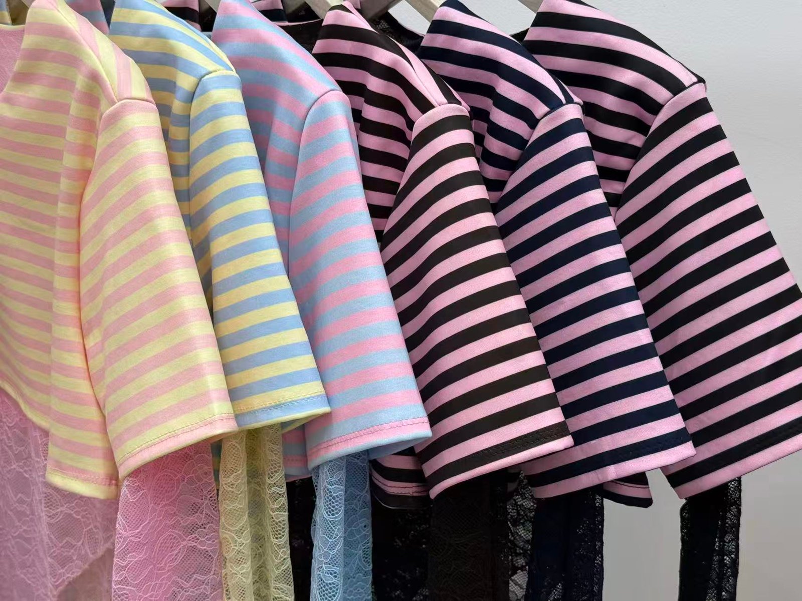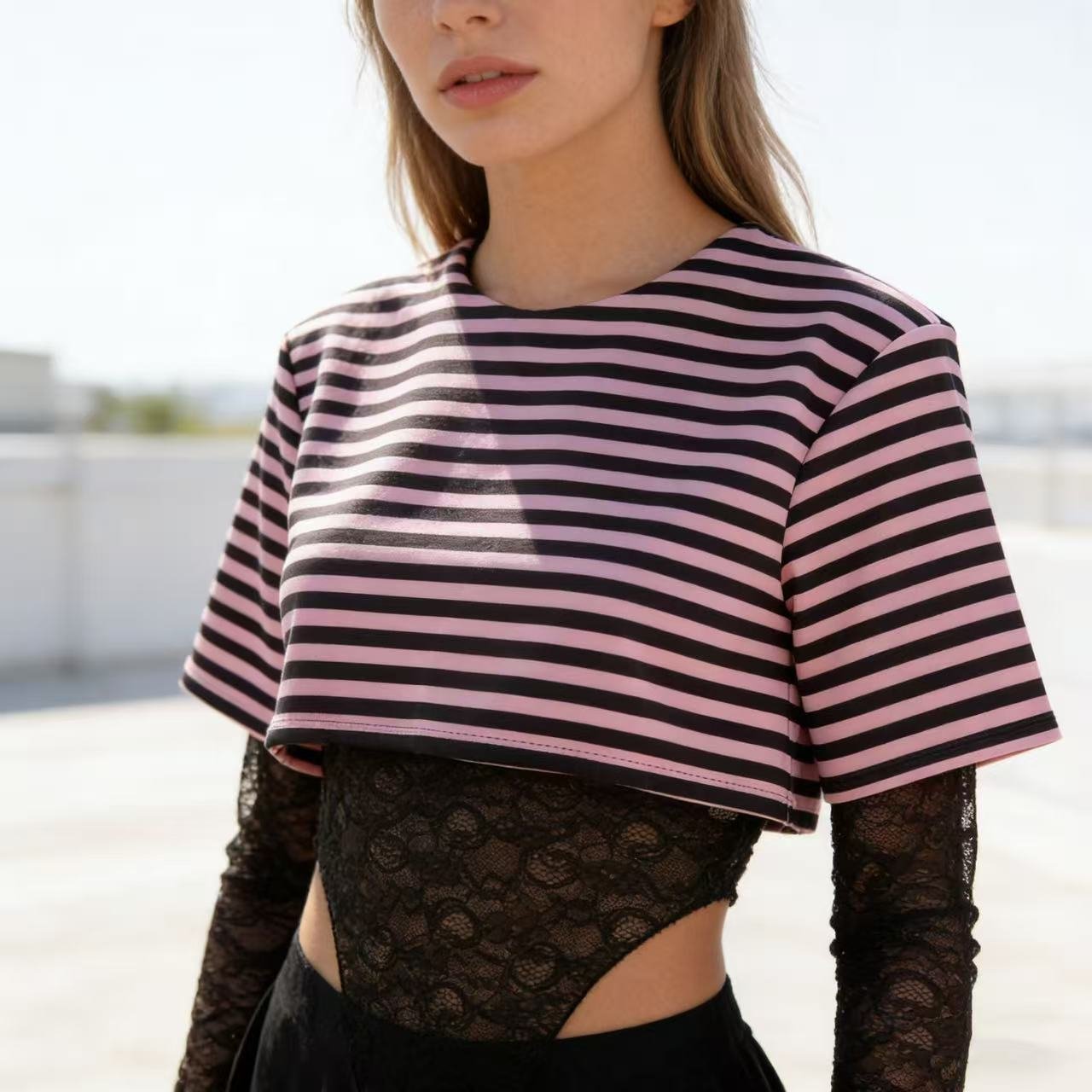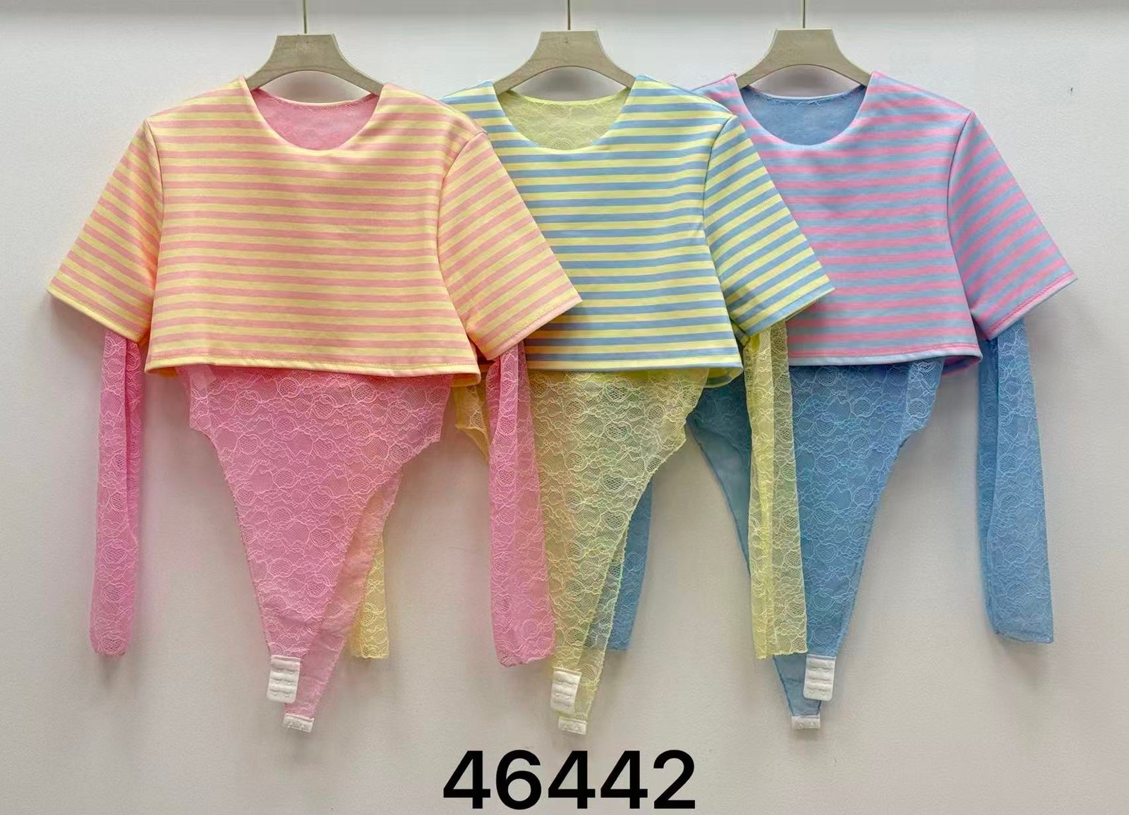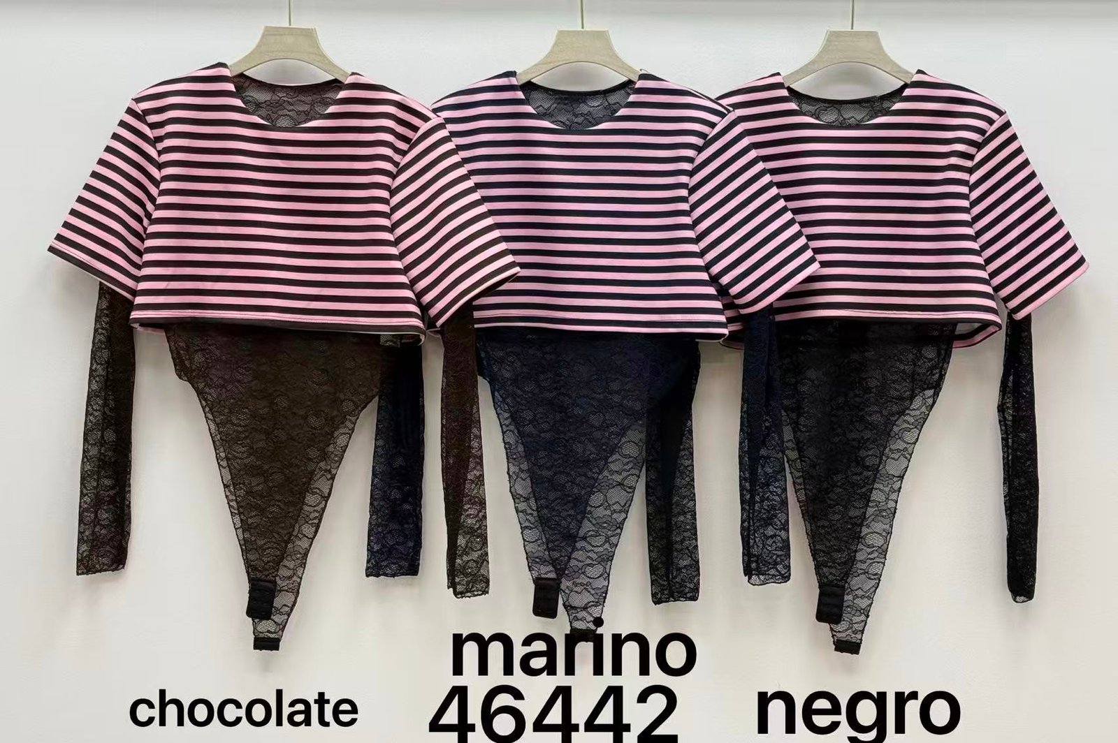 Body combinado con crop rayado ✨ Manga de encaje y cierre inferior.