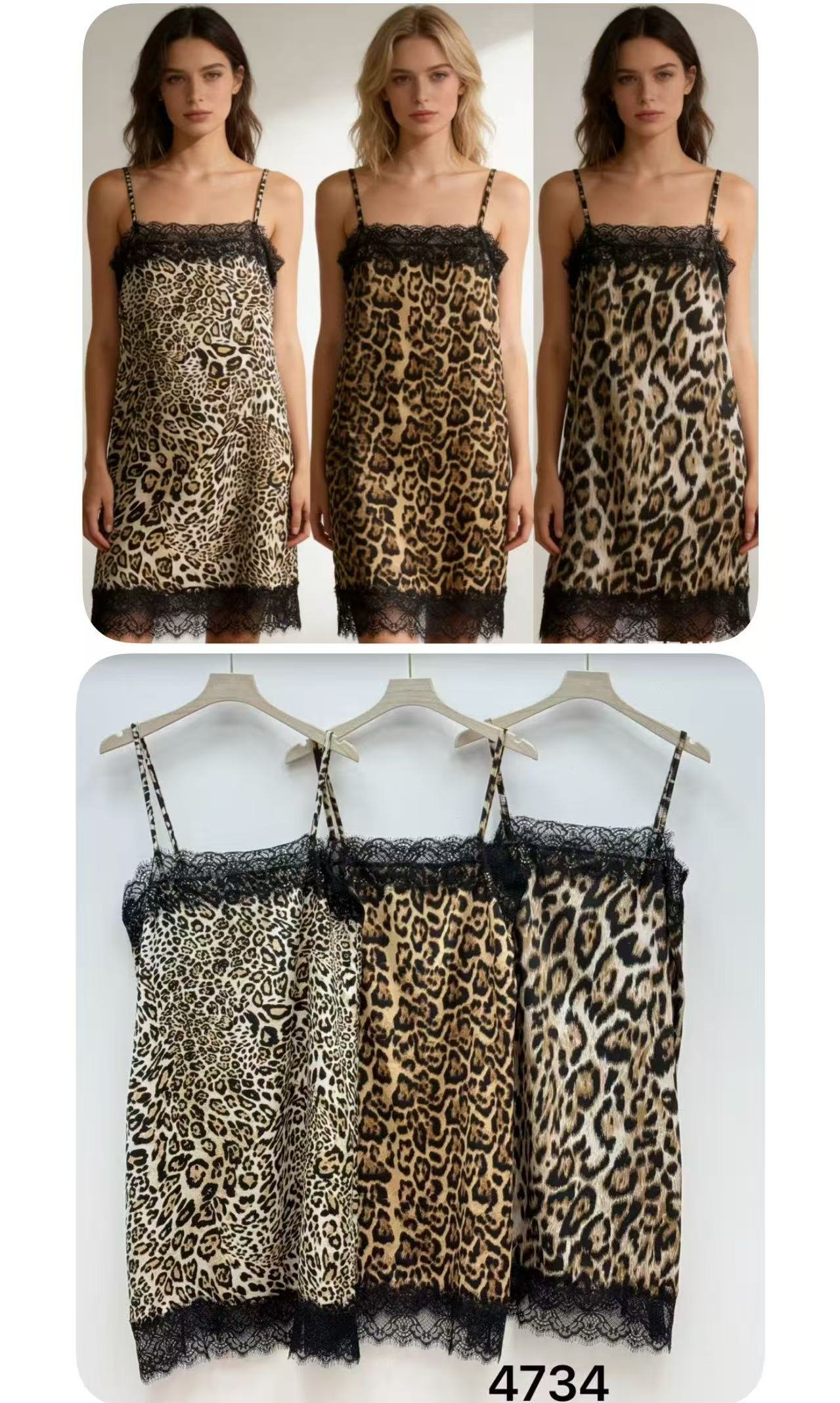 Vestido lencero estampado ✨ Tirantes satinados y detalle de encaje.