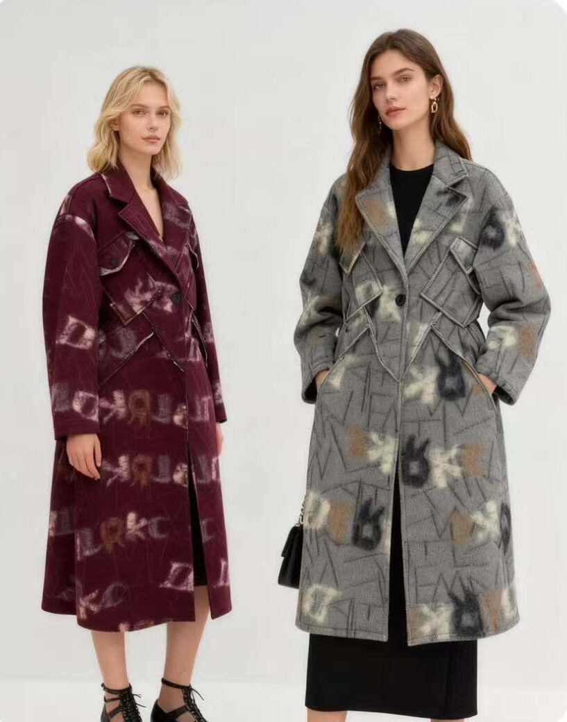 Diseño moderno con cuello solapa y cierre de botones frontales.