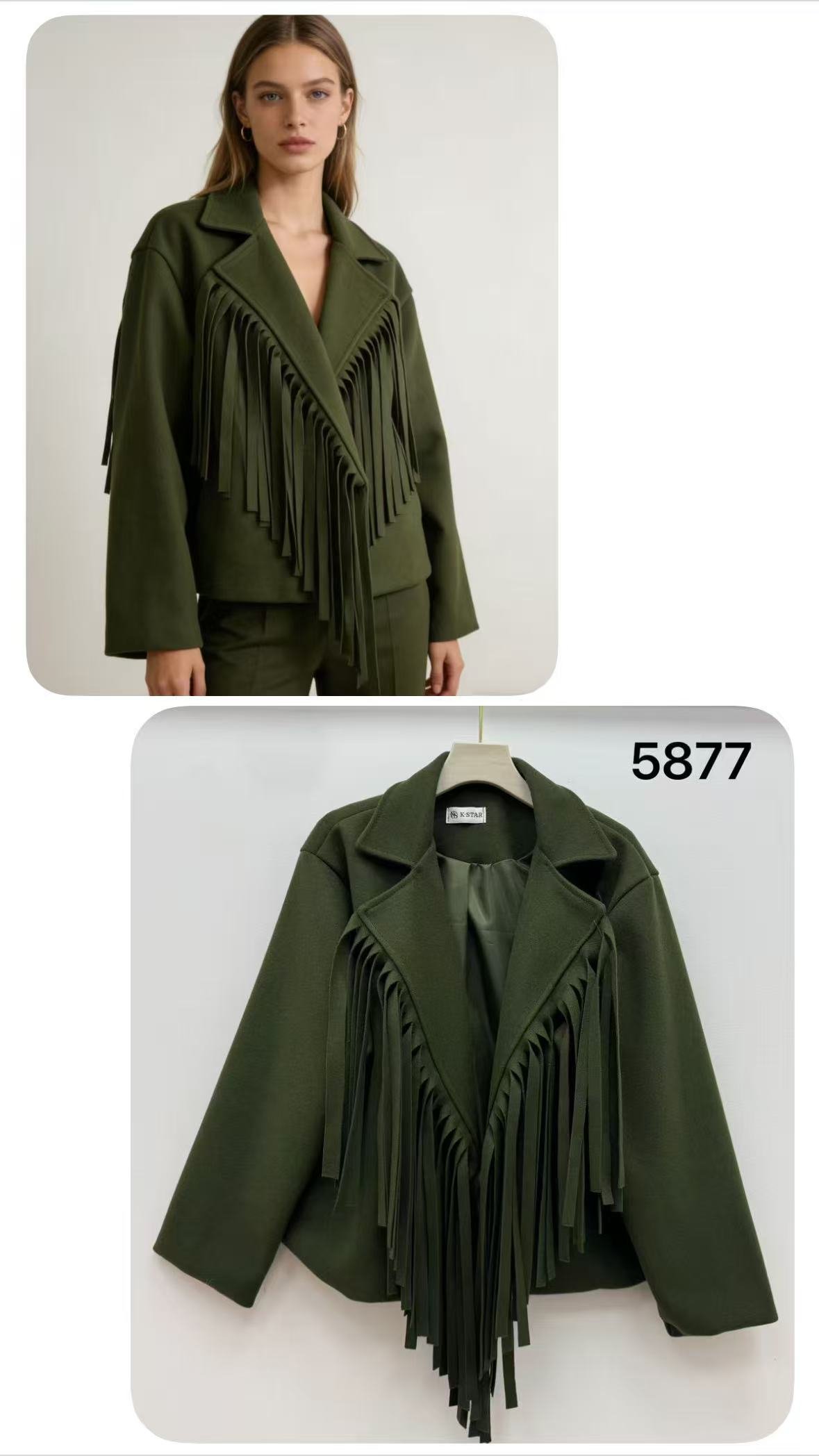 Diseño moderno con flecos frontales y bolsillos laterales. Tejido grueso tipo paño, muy estiloso y fácil de combinar.