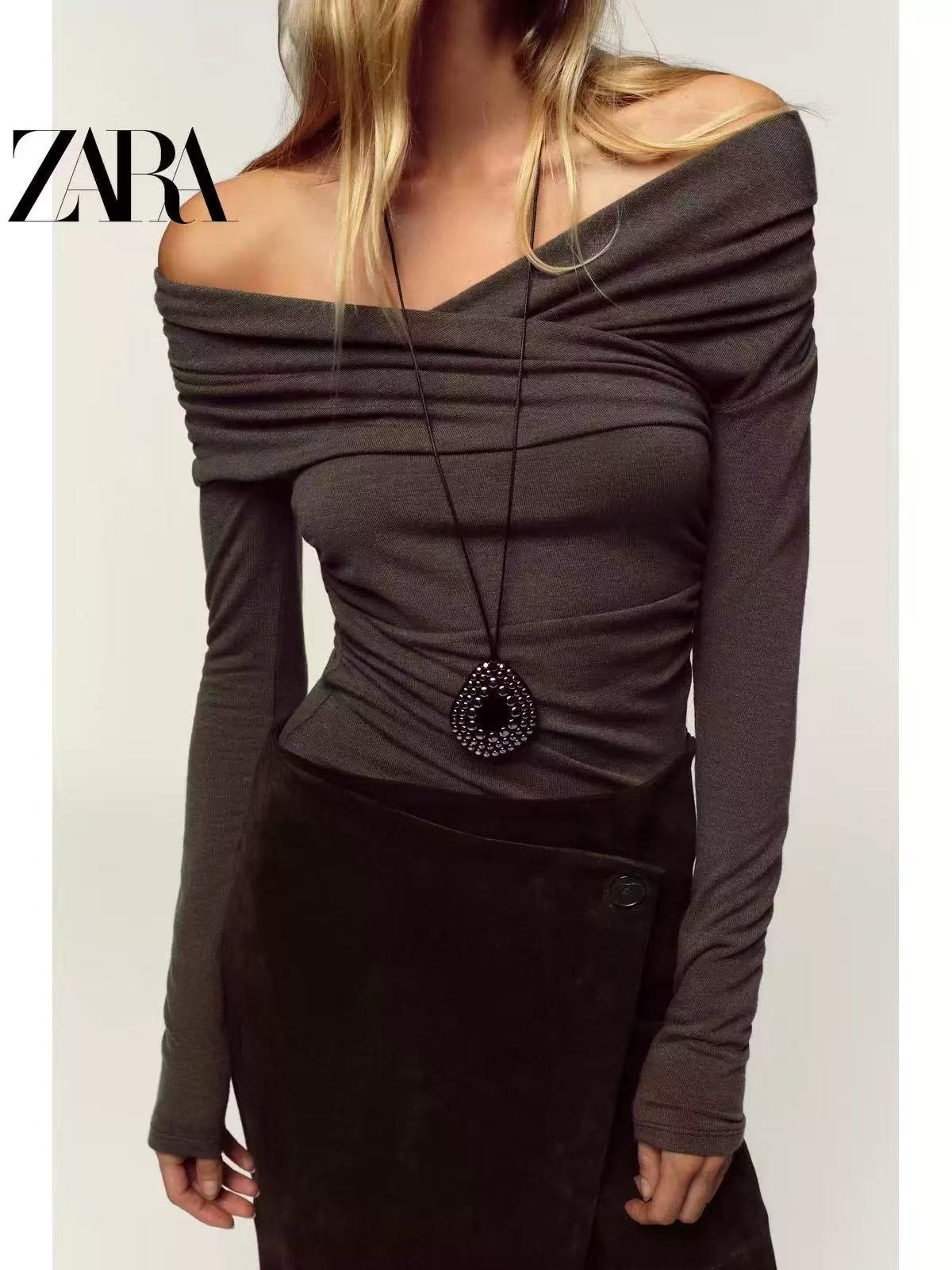 Camiseta fruncida de tejido modal canalé muy suave con gran elasticidad 📏 Pecho: 40–42 cm