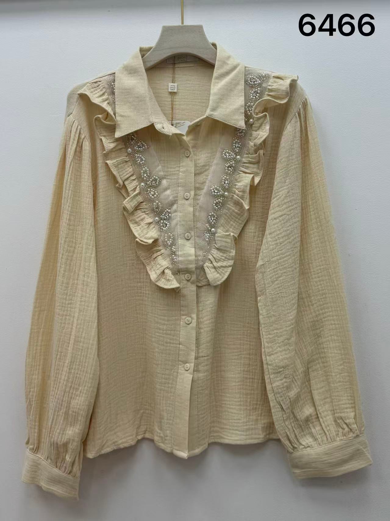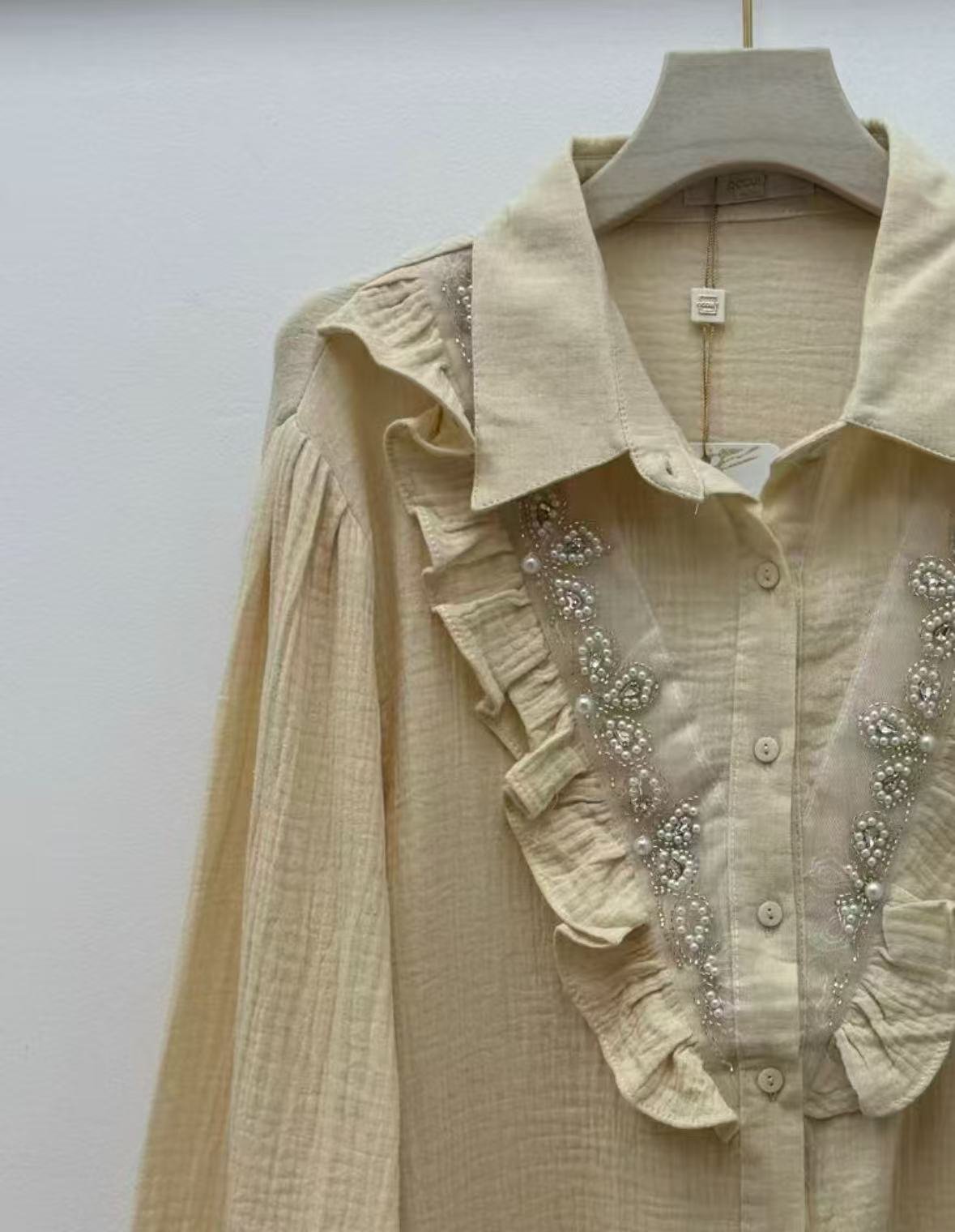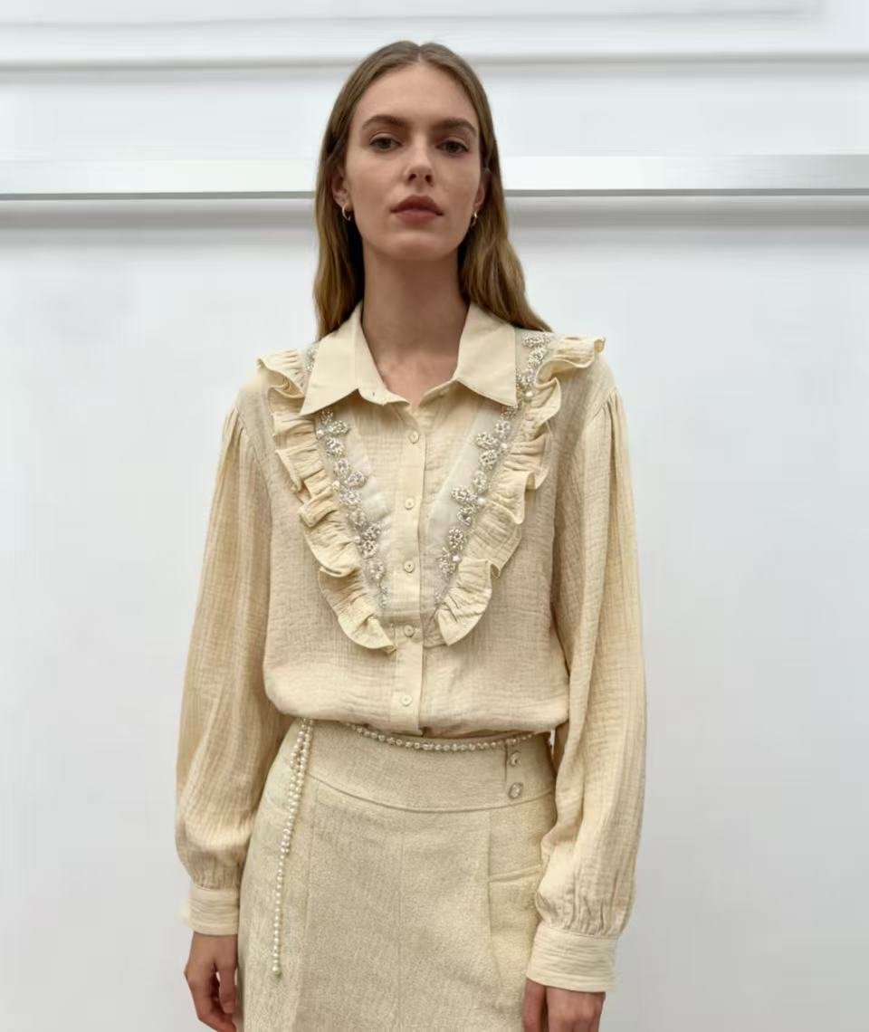 Blusa con volante y bordado ✨ Tejido ligero y elegante, cómoda para el día a día.