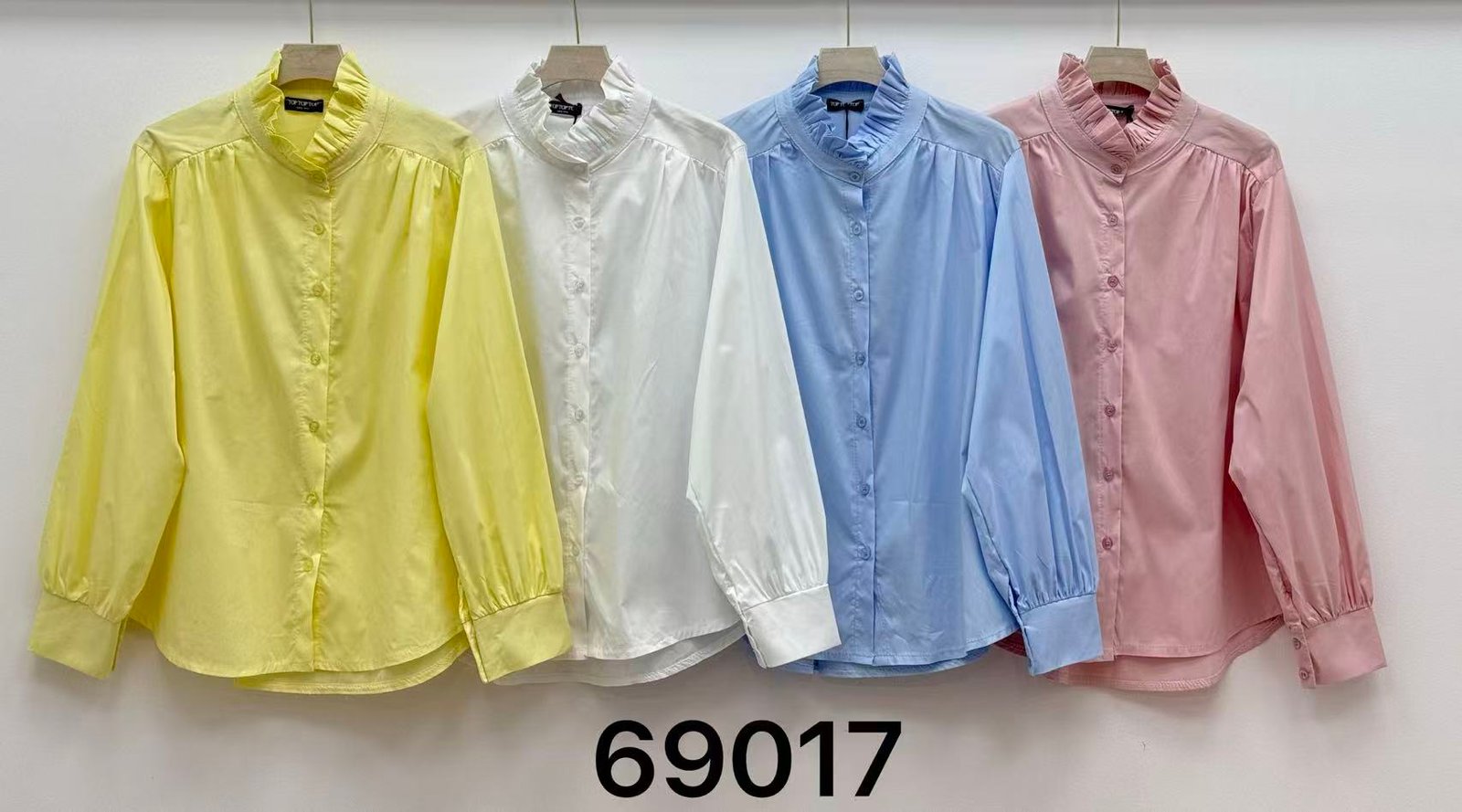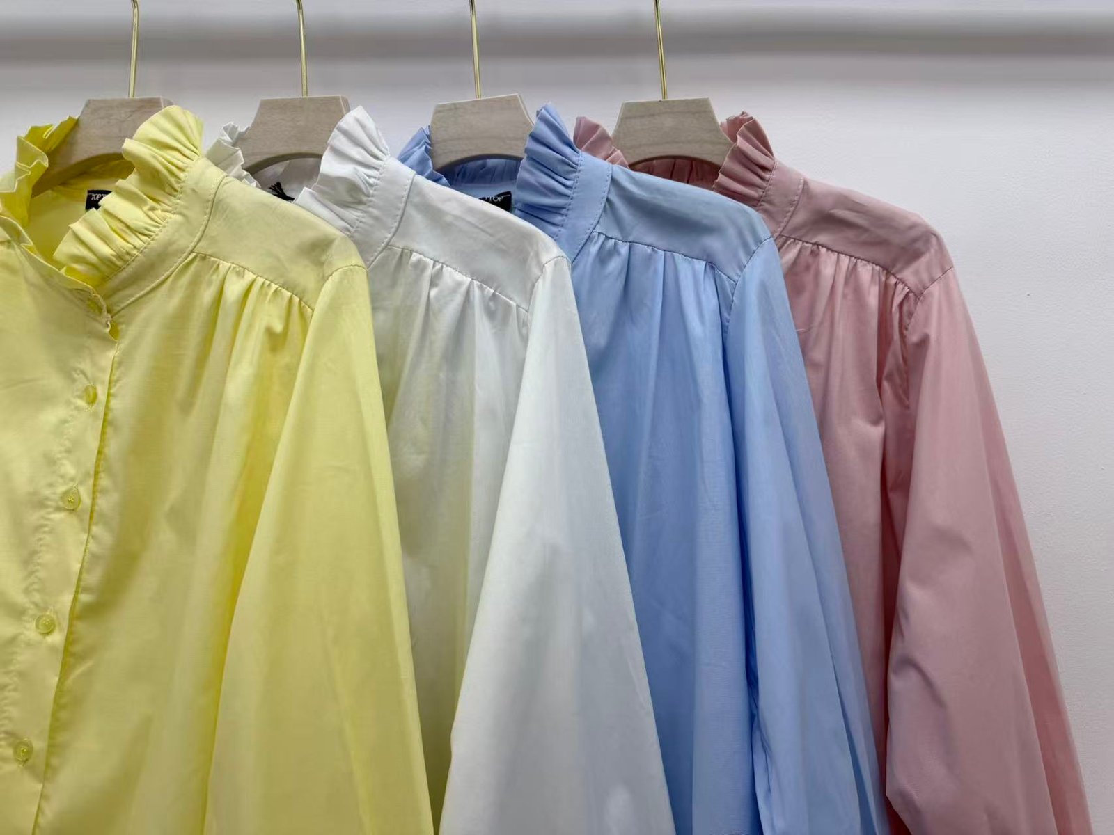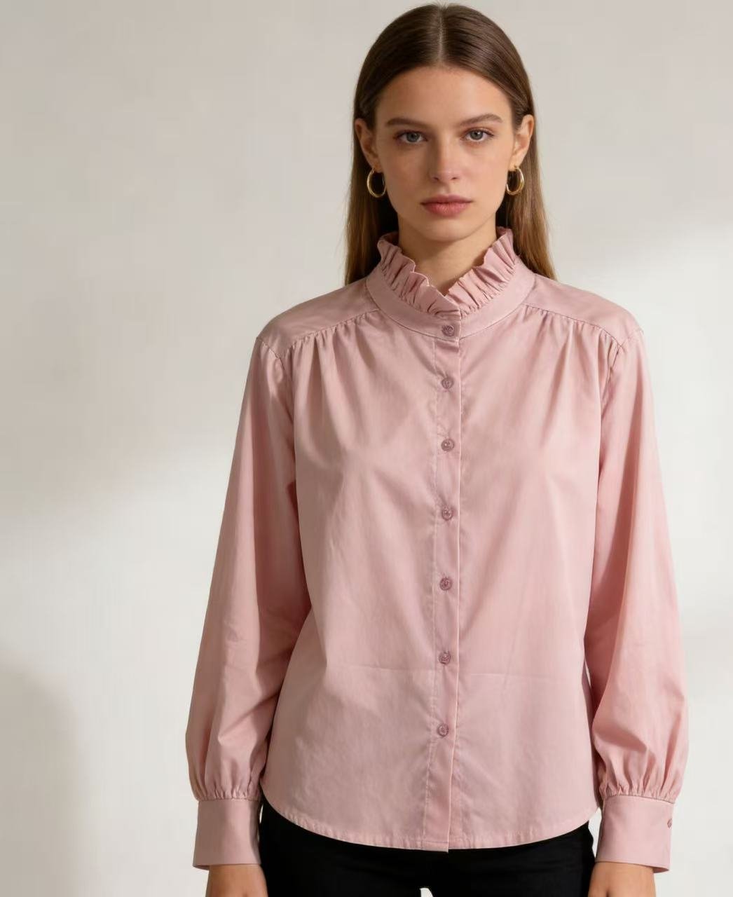 Camisa popelín cuello fruncido ✨ Diseño elegante y limpio, ideal para diario u oficina. 📏 Talla del pecho: 60–62 cm