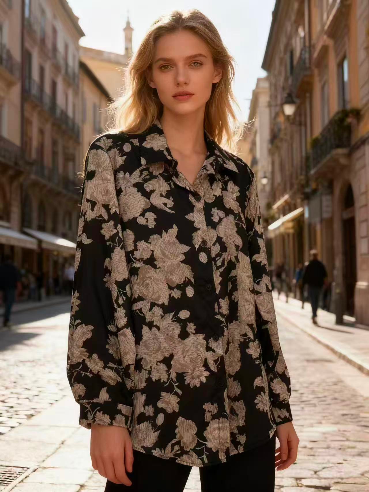 Blusa satinada print corazones