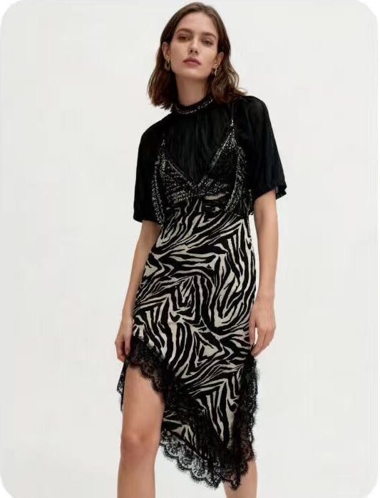 ✨ Diseño moderno con bajo irregular y detalle de encaje