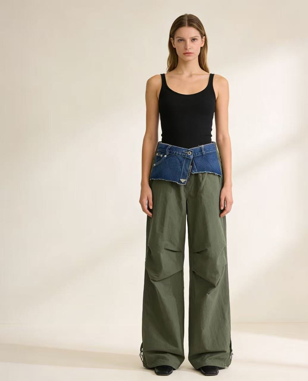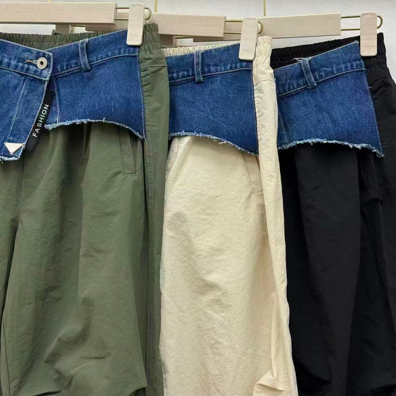 👖 Pantalón casual con detalle denim en la cintura