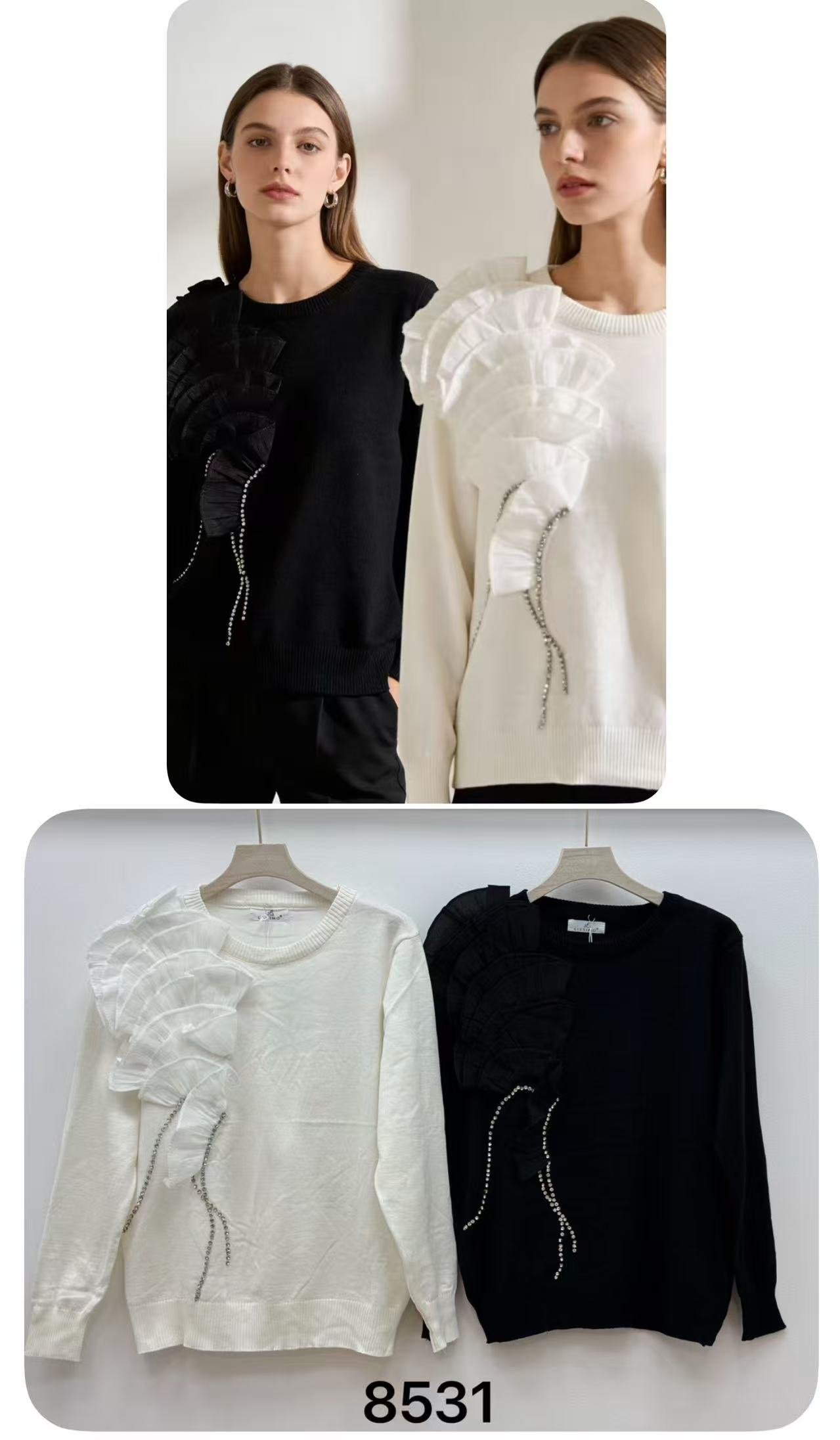 Diseño especial con volantes estructurados en el hombro y tiras brillantes que aportan un toque elegante y llamativo.
