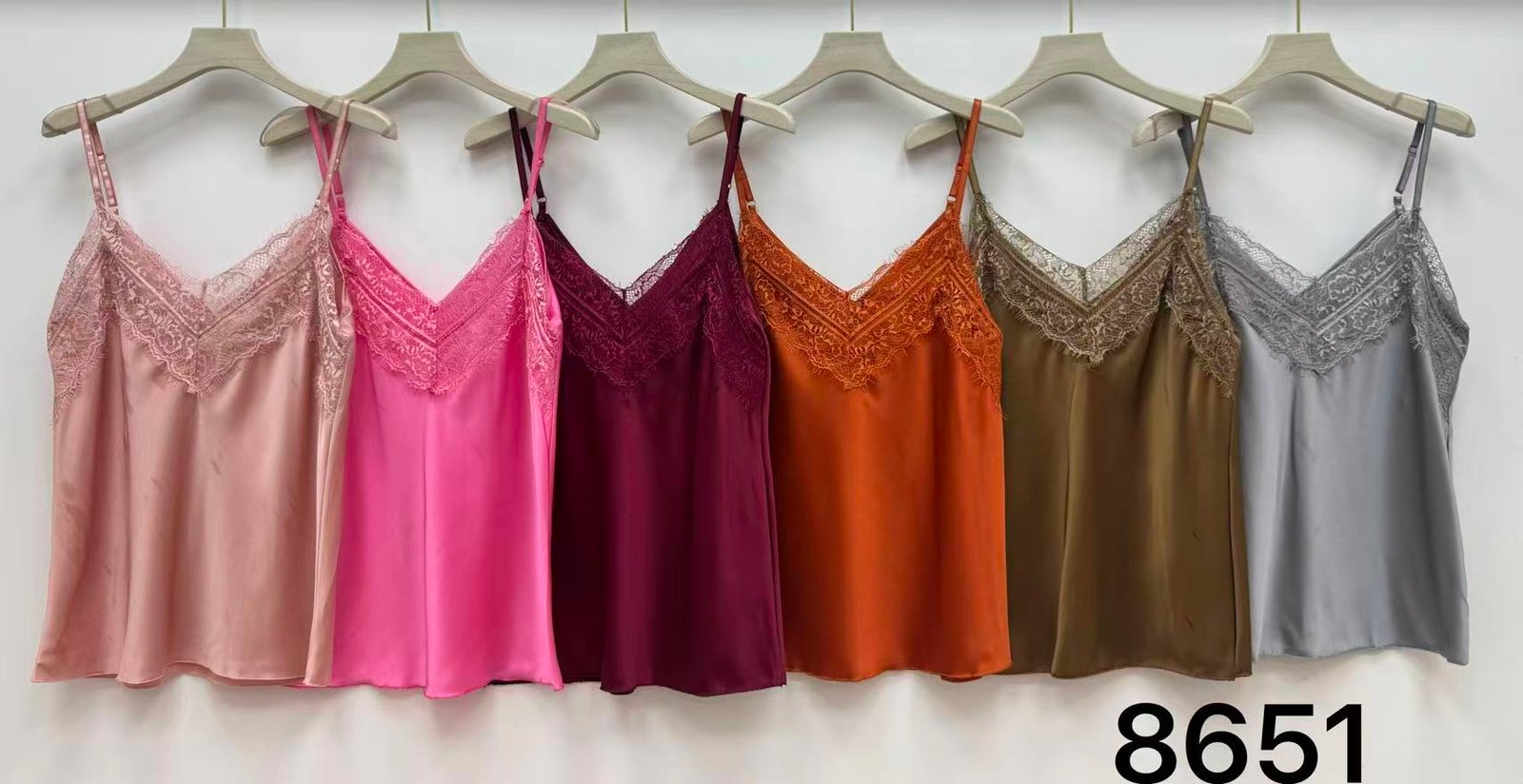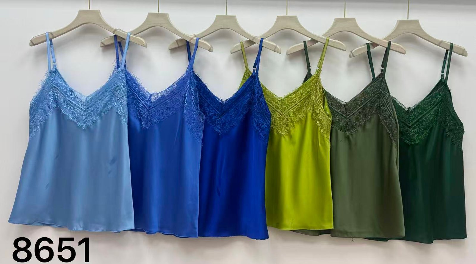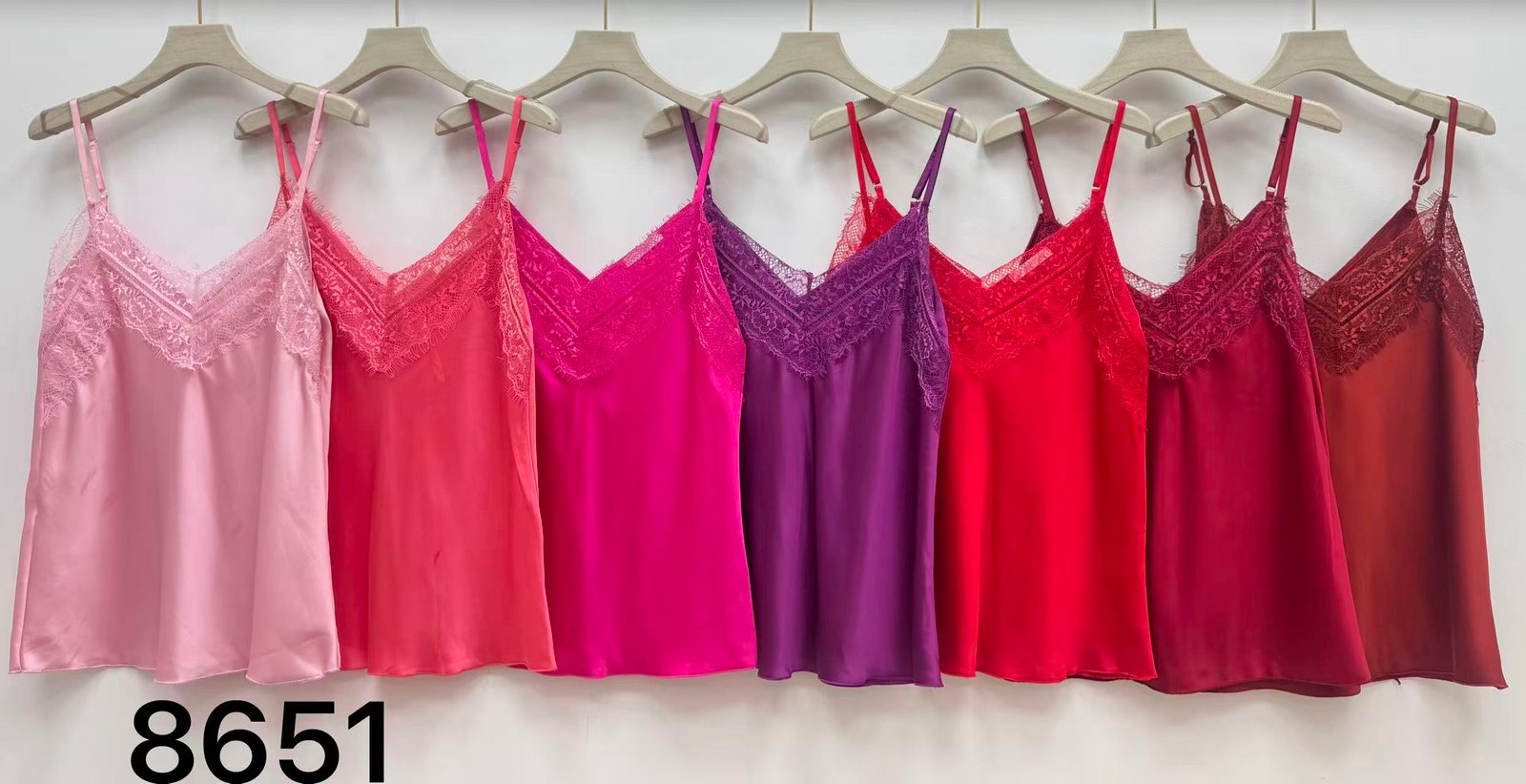 Diseño femenino y elegante, con tirantes finos ajustables y acabado brillante tipo seda.
