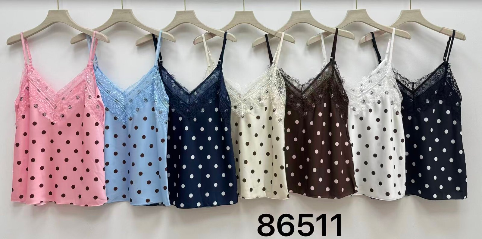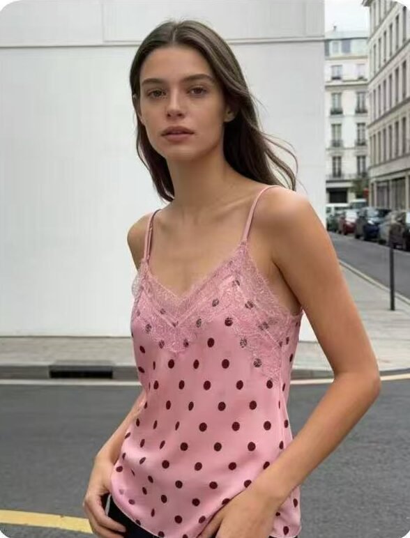 Top satinado de lunares con encaje ✨