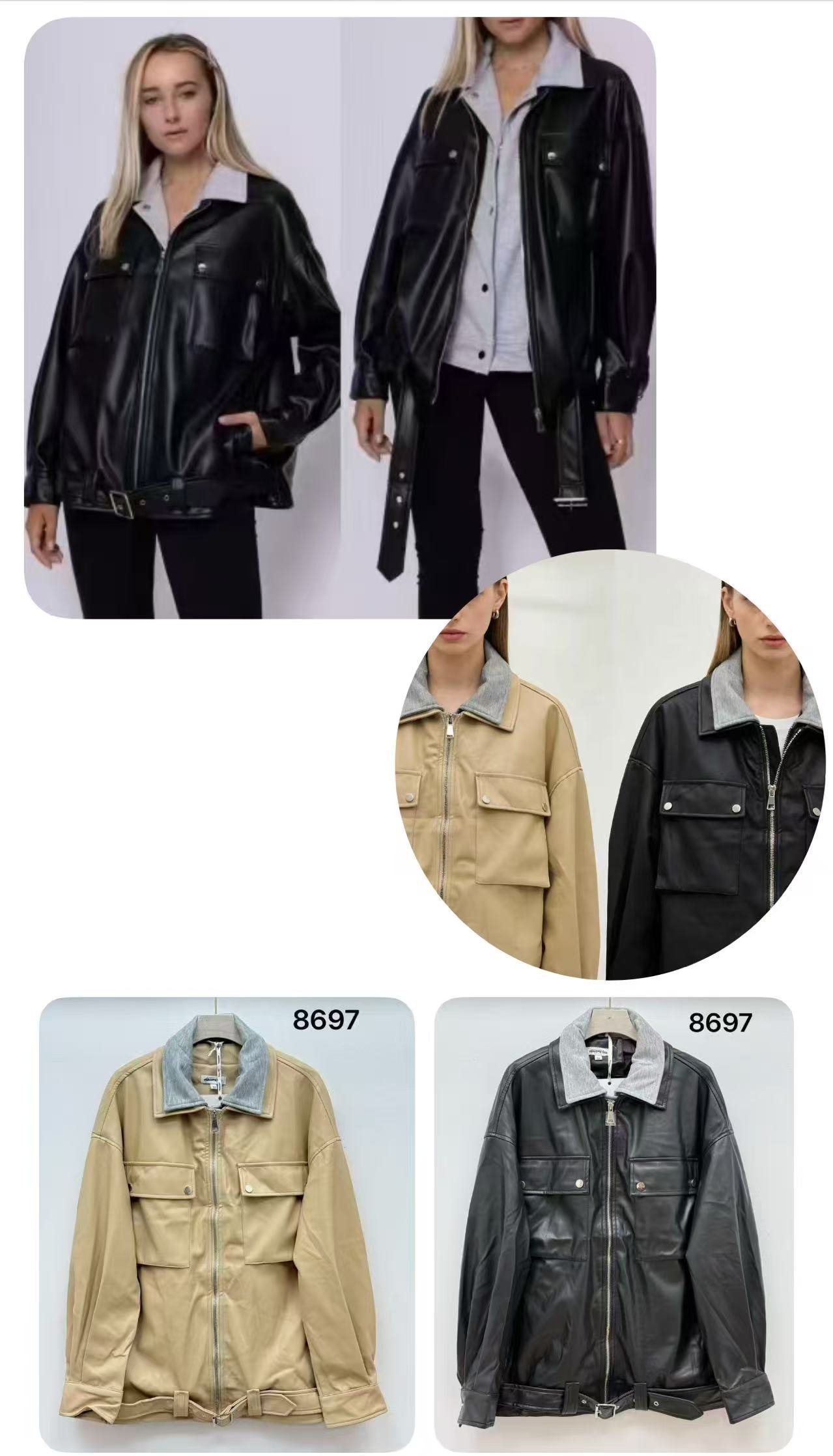 Chaqueta efecto piel con diseño dos piezas