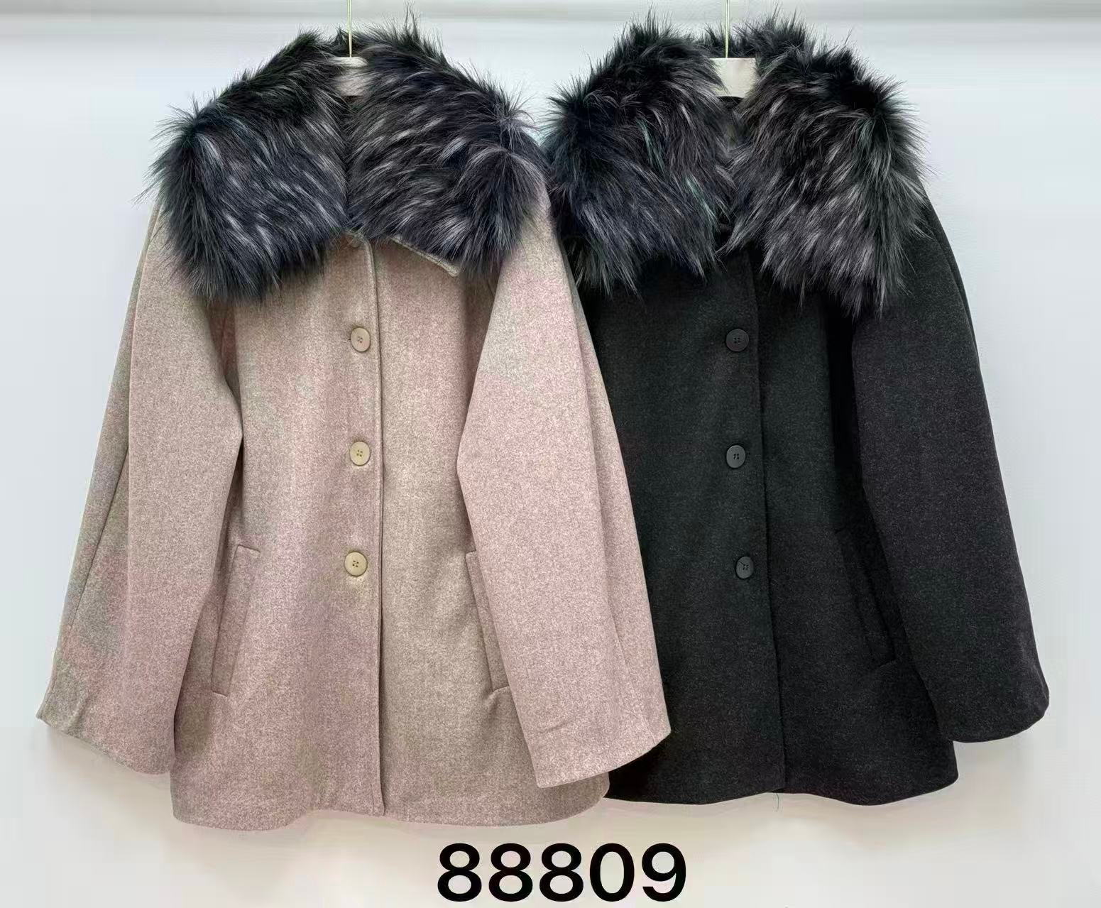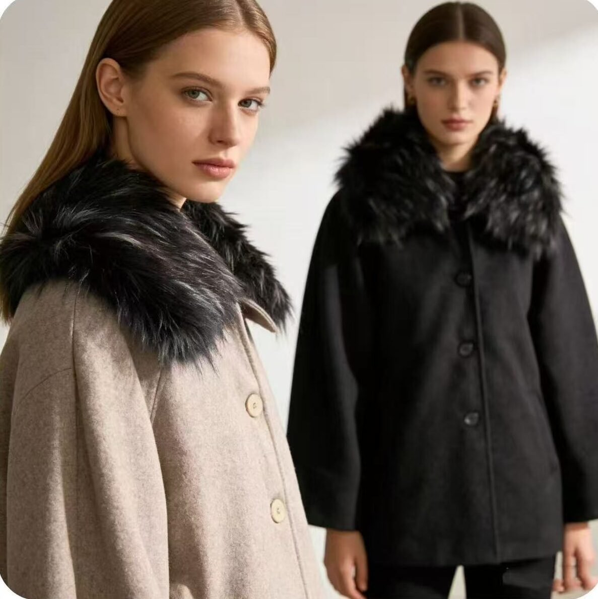 Abrigo de paño bicolor con cuello de pelo sintético