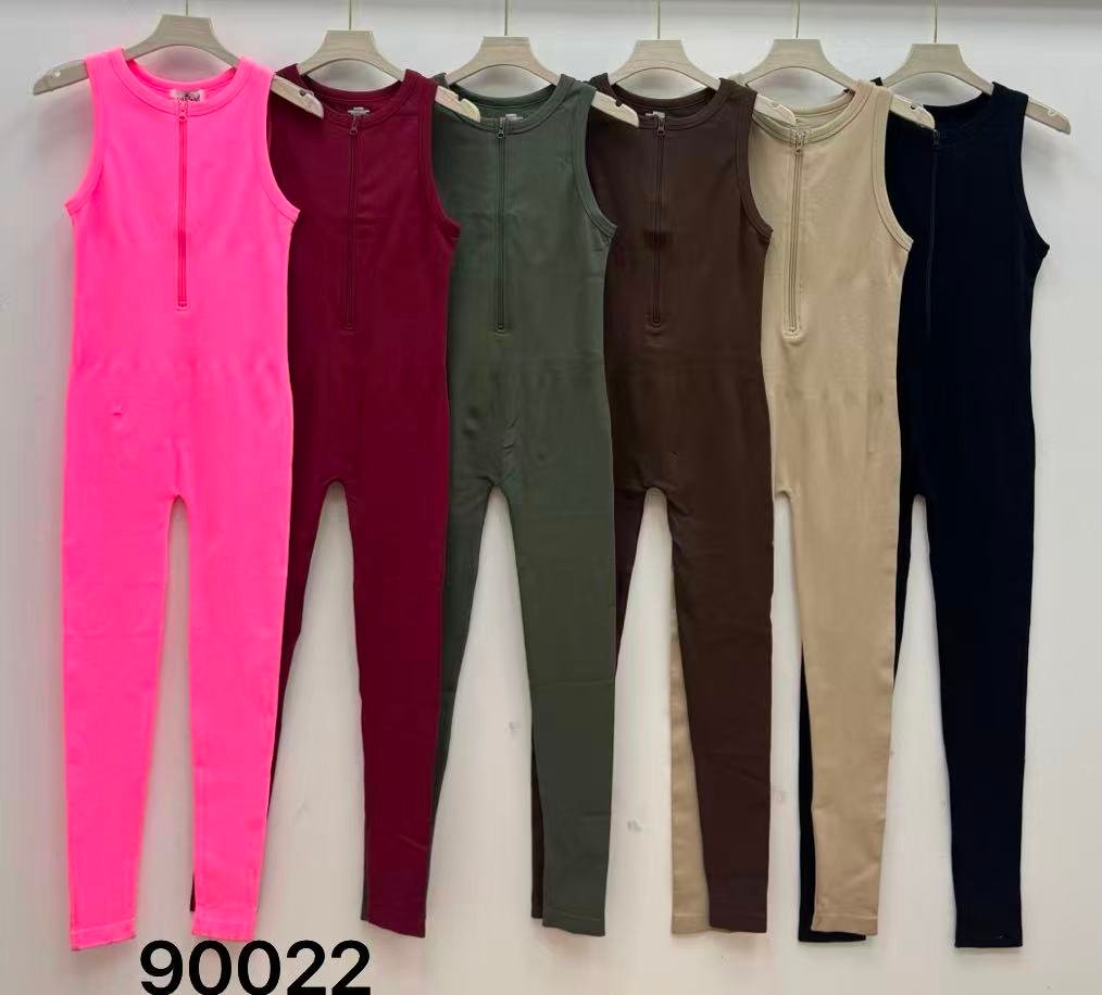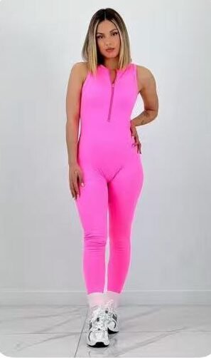 Tejido elástico de punto canale, diseño sin mangas con cremallera frontal. Ajusta y estiliza, ideal para entrenar o para un look sport moderno.